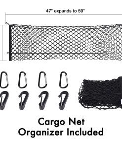 2. SE AJUSTA A LA LONGITUD PERFECTA El organizador de red de carga se ajusta de 47 a 59 pulgadas y viene con ganchos y cuatro mosquetones de metal para una instalación fácil y universal. Nuestro recogedor de carga se extiende fácilmente de 2.5 pies a 6 pies, herramienta perfecta para camas de camionetas de 8 pies.