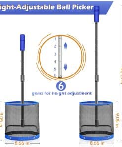 Recoge de manera fácil y eficiente las pelotas de tenis de mesa con este recogedor de pelotas ajustable en ángulo. El material de alta calidad garantiza un uso duradero, con una estructura estable que no se deforma. El diseño de ángulo ajustable te permite inclinarlo a 90 grados, lo cual facilita la recogida de las pelotas sin tener que agacharte. Con una capacidad para almacenar hasta 120 pelotas de tenis de mesa, este recogedor es perfecto para satisfacer tus necesidades diarias. La base estable y la resistente red de recogida hacen que sea una herramienta conveniente y duradera para tu juego de tenis de mesa. ¡Simplifica tu rutina de recogida de pelotas con este práctico y eficiente recogedor!