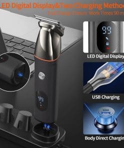 Este recortador de barba eléctrico tiene un rendimiento de batería potente y duradero para un uso inalámbrico fiable y duradero. Se carga rápidamente en dos horas, proporcionando hasta 90 minutos de uso. Puedes cargar el recortador a través de la base o directamente en el cuerpo, lo que te permite usarlo mientras se carga. La pantalla LED inteligente te indica exactamente cuánta energía queda en todo momento y cuándo cargar este recortador de barba ajustable. El recortador de barba eléctrico y los accesorios son completamente impermeables, lo que facilita la limpieza simplemente enjuagándolos bajo el grifo. Utiliza el cepillo incluido para ayudarte a limpiar fácilmente. Este recortador de barba ajustable es perfecto para aquellos a quienes les gusta afeitarse en la ducha. Protege tu compra: Creemos que te encantará este recortador de pelo multifuncional. Si tienes algún problema de calidad después de la compra, puedes contactarnos en cualquier momento y te responderemos lo antes posible. También te ofrecemos una garantía de 12 meses.