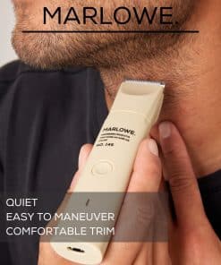 Eliminar todo ese vello no deseado o asearlo con estilo ahora es simple con la Recortadora de Vello Corporal para Hombres de Marlowe. Elegante dispositivo de aseo masculino con un diseño elegante y compacto que facilita el manejo y eleva al siguiente nivel. Esta afeitadora corporal eléctrica es impermeable y resistente a la ducha, lo que significa que puedes usarla y limpiarla fácilmente en la ducha, y está diseñada para ser silenciosa sin el zumbido molesto. Úsala para asear tu cabello, barba y vello en el pecho o púbico sin esfuerzo. Las cuchillas de recorte de cerámica funcionan suavemente en todo el cuerpo. La recortadora viene con cuchillas desmontables, un cepillo de limpieza y dos longitudes de peine ajustables. Cuenta con una batería recargable Ni-MH (600) mAH y un cable de carga USB. La recortadora de motor de (6000) RPM funciona durante (50) minutos con una sola carga. Tener las partes limpias y ordenadas que deseas ahora es fácil. Los productos Marlowe están diseñados para trabajar tan duro como lo haces, y te mereces la elevada Recortadora de Cuerpo Marlowe para llevar tu aseo al siguiente nivel.