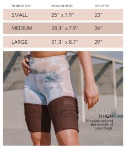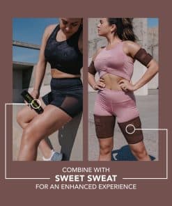 El Recortador de Muslos Sweet Sweat comprime y apoya el área de su muslo mientras retiene calor terapéutico. Como resultado, no solo tonificará y dará forma a sus muslos, sino que también minimizará la aparición de tirones y distensiones en los Cuádriceps e Isquiotibiales. Los Recortadores de Muslos están hechos de neopreno térmico 100% libre de látex, con un forro de nailon en el lado exterior y un diseño contorneado para mayor comodidad. Consejos rápidos: Los productos de neopreno producen un efecto similar a una sauna en la piel, es muy importante mantenerse hidratado al hacer ejercicio con los Recortadores de Muslos Sweet Sweat. Después de cada uso, limpie el recortador de muslos con un paño seco. ¡Precaución! Algunas personas pueden ser sensibles a los productos de neopreno. Evite usar el recortador de muslos Sweet Sweat si es propenso a la dermatitis. Si se desarrolla una erupción, deje de usarla inmediatamente. Importante: Para evitar irritación en la piel y posibles erupciones, limpie el recortador de muslos después de cada uso con un paño seco. No use los Recortadores de Muslos durante más de 3 horas seguidas. Uso con Sweet Sweat: Para obtener mejores resultados, úselo en combinación con el Gel ‘Enhancer’ de Entrenamiento Sweet Sweat. Aplique una capa fina de Sweet Sweat debajo del Recortador de Muslos antes de comenzar su entrenamiento. Sweet Sweat funciona con su frecuencia cardíaca elevada, por lo que debe realizar algún tipo de actividad cardio para activarlo.