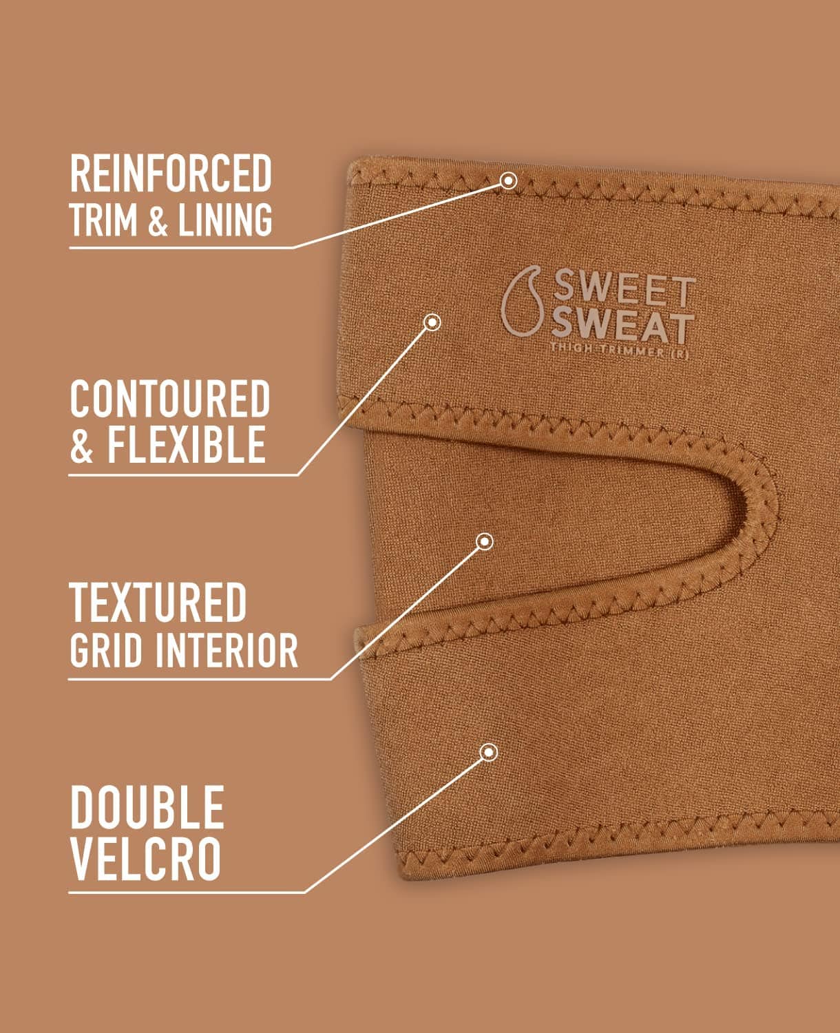 El Recortador de Muslos Sweet Sweat comprime y apoya el área de tus muslos mientras retiene el calor terapéutico. Como resultado, no solo tonificarás y darás forma a tus muslos, sino que también minimizarás la aparición de tirones y tensiones en los Cuádriceps y las Isquiotibiales. Los Recortadores de Muslos están hechos de neopreno térmico 100% libre de látex, con un revestimiento de nylon en el lado exterior y un diseño contorneado para mayor comodidad. Consejos Rápidos: Los productos de neopreno producen un efecto similar al de una sauna en la piel, es muy importante mantenerse hidratado al hacer ejercicio con los Recortadores de Muslos Sweet Sweat. Después de cada uso, limpia el recortador de cintura con un paño seco. ¡Precaución! Algunas personas pueden ser sensibles a los productos de mezcla de neopreno. Evita usar el Recortador de Muslos Sweet Sweat si eres propenso a la dermatitis. Si aparece una erupción, suspende su uso de inmediato. Importante: Para evitar irritación en la piel y posibles erupciones, limpia el recortador de muslos después de cada uso con un paño seco. No uses los Recortadores de Muslos por más de 3 horas seguidas. Uso con Sweet Sweat: Para obtener mejores resultados, úsalo en combinación con Sweet Sweat Workout Enhancer. Aplica una capa fina de Sweet Sweat debajo del Recortador de Muslos antes de comenzar tu entrenamiento. Sweet Sweat funciona con tu ritmo cardíaco elevado, así que debes hacer alguna actividad cardiovascular para activarlo.
