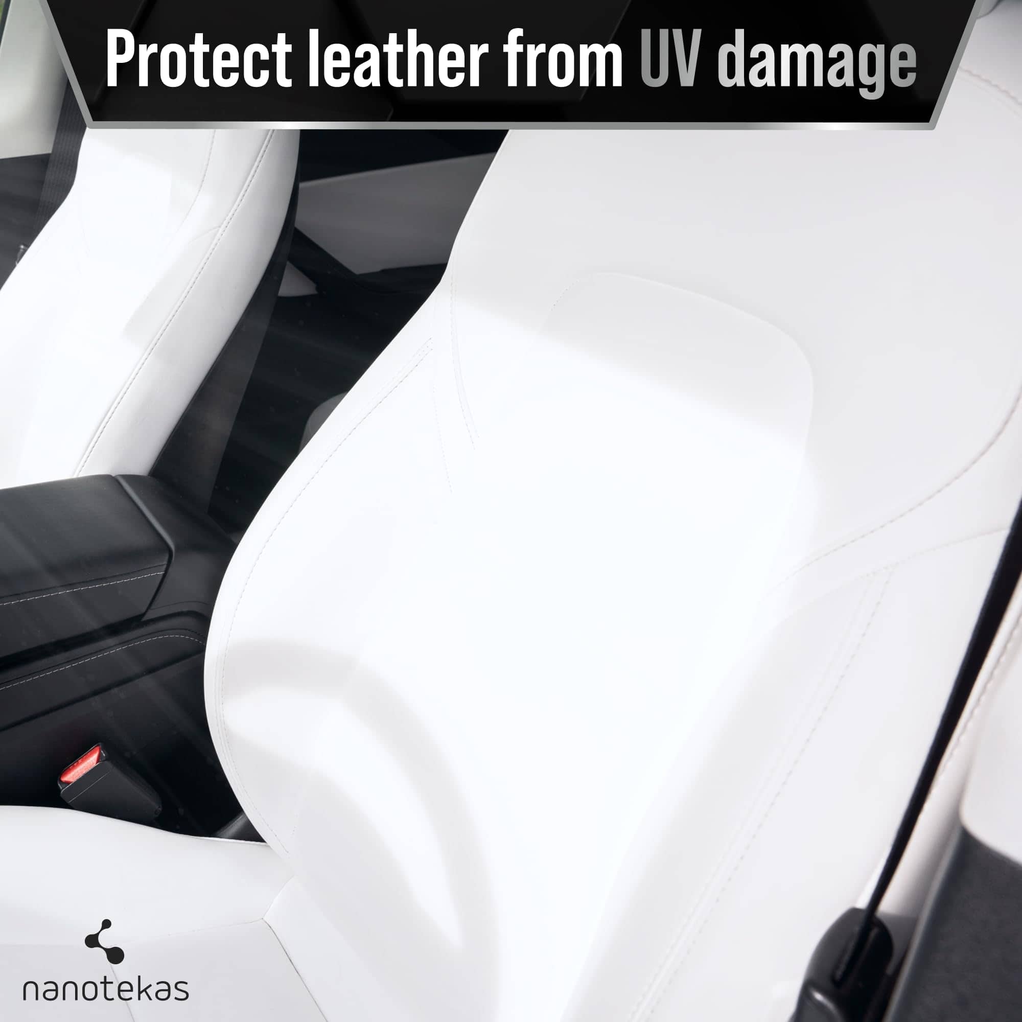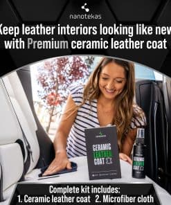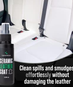 Recupera la vida de tus asientos de cuero con Nanotekas Recubrimiento de cuero cerámico profesional. Nuestra fórmula exclusiva de tecnología nano ha sido diseñada para eliminar de manera efectiva derrames y transferencia de color de jeans oscuros, manteniendo tus asientos de cuero como nuevos. Envuelve tus asientos en una capa invisible para protegerlos de la transferencia de color y daños por rayos UV. Además, nuestro recubrimiento de cuero cerámico actúa como un escudo impermeable, evitando que los derrames se absorban en el cuero y minimizando manchas permanentes.