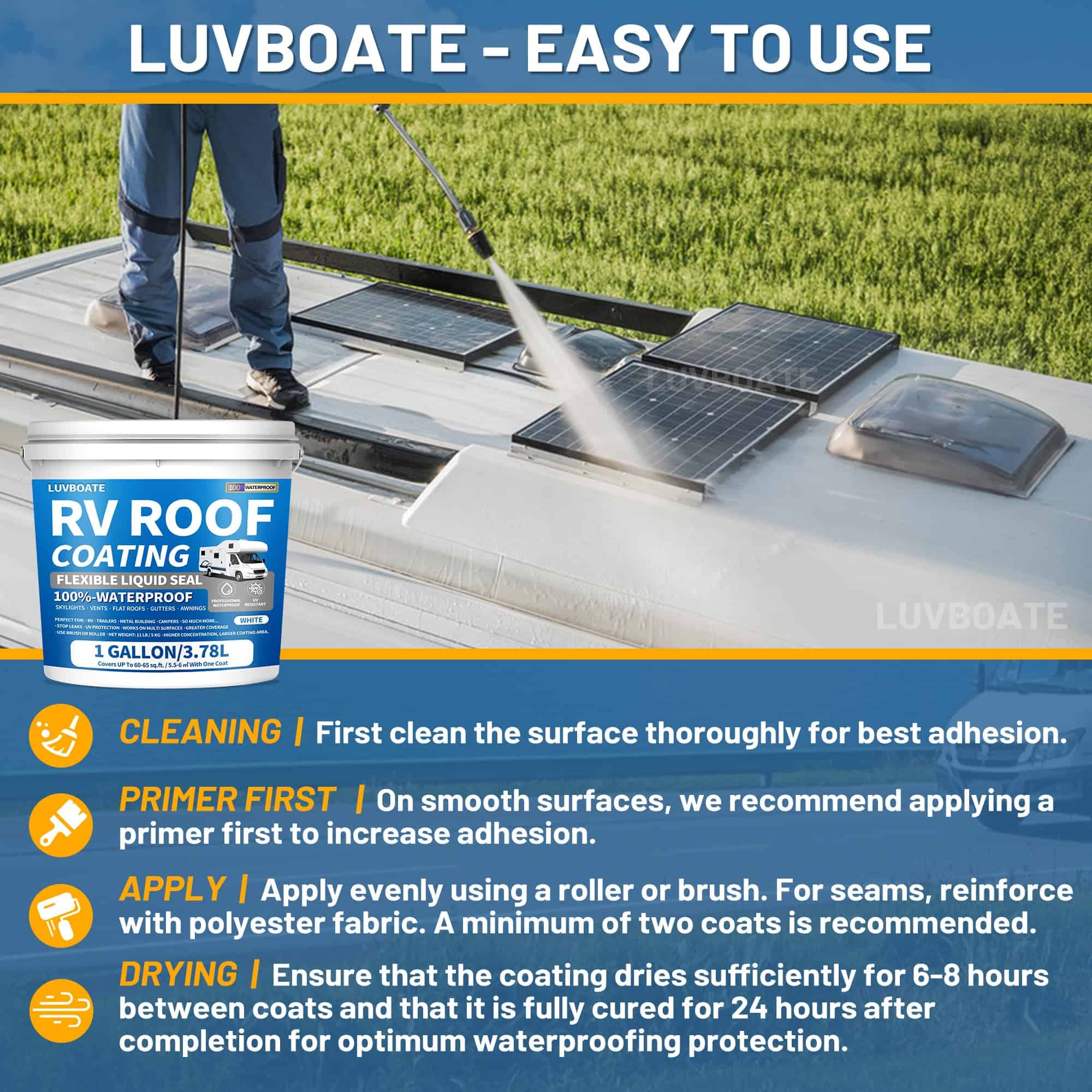 Recubrimiento para Techo de RV Blanco de 1 Galón, Sellador
