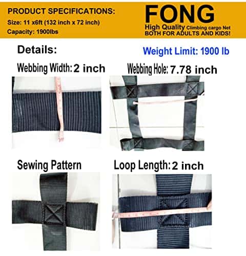 Red de Carga de Escalada Fong 11 ft X 6 ft Negro (132