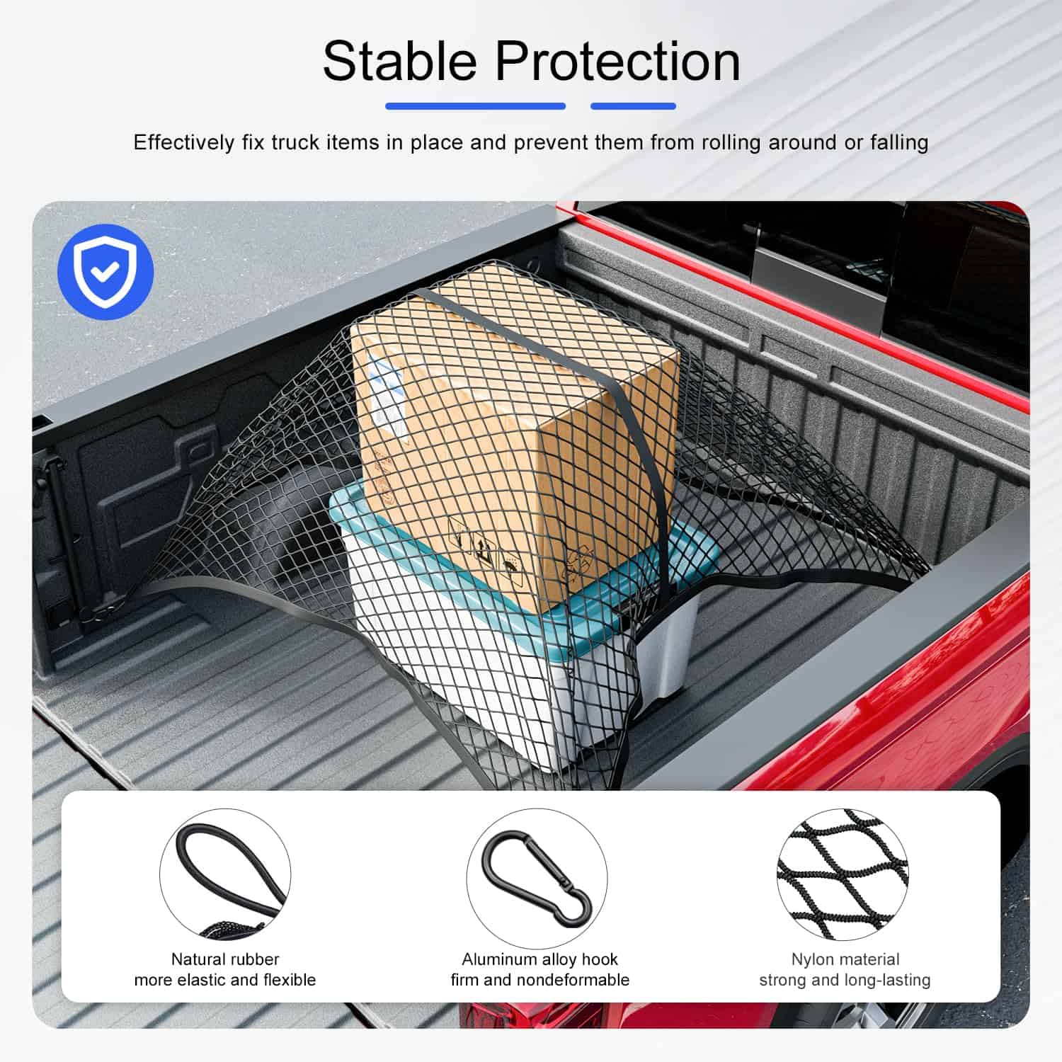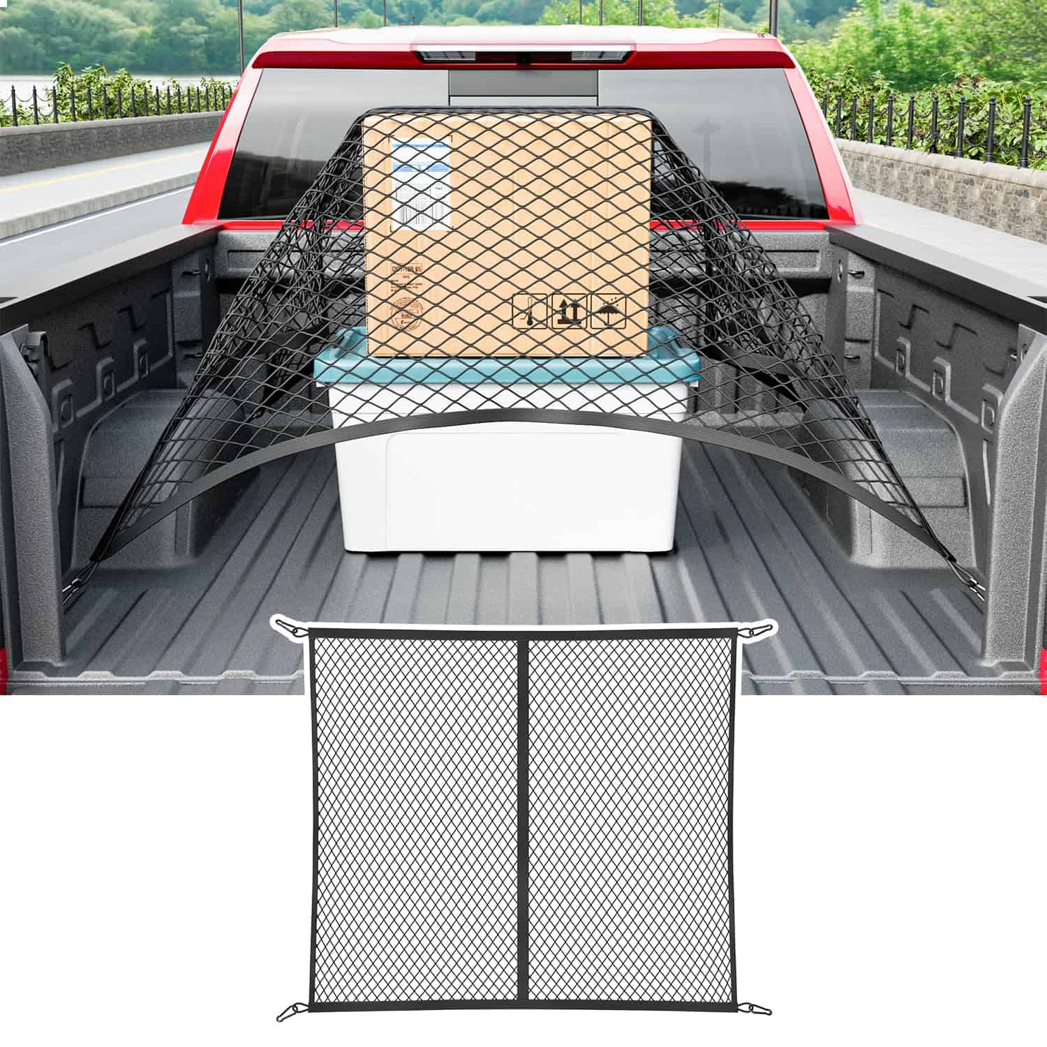 2. Material premium: Nuestra red de carga para cama de camión es reemplazo de la red de carga de cama de camión para Chevy Silverado 2025 está hecha de material de nylon de alta calidad. La cuerda de nylon elástica es muy elástica y flexible, y muy resistente al desgaste, por lo que puede soportar la carga del camión sin romperse fácilmente. Podrías usarlo por mucho tiempo.