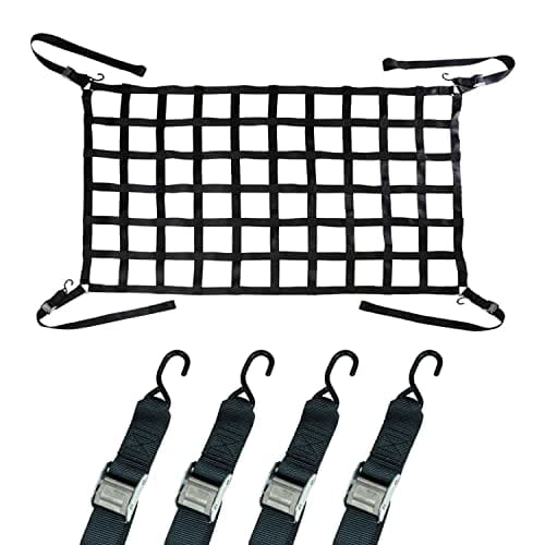 La red de carga para camioneta de cola larga de US Cargo Control con hebillas de leva y ganchos S te permite asegurar la carga en la cama de tu camioneta. Saber que no tienes que preocuparte por que la carga se caiga de la parte trasera de tu camioneta te da tranquilidad, para que puedas concentrarte en el camino por delante y en lo más importante: conducir de forma segura. Esta red de carga resistente está hecha con materiales de alta calidad, incluyendo cintas de poliéster negro de 2″ de resistencia industrial, por lo que está construida para durar. Esta versátil red de carga tiene unas dimensiones de 82″ x 50″, y tiene una mayor capacidad de ajuste en las cuatro correas de las esquinas. Cada correa de esquina tiene una longitud máxima de 48″ y está unida con un anillo en D de 5K para mayor seguridad. Los ganchos S recubiertos de vinilo te permiten unir esta red de carga de camioneta a tus puntos de anclaje, sin tener que preocuparte de que los ganchos rayen la cama del camión. La tensión proporcionada por las hebillas de leva la determina la fuerza y la capacidad del usuario para tensar la correa, lo que elimina el riesgo de apretar demasiado y dañar la red o la cama del camión. ¡Esto es imprescindible para tu camioneta larga! ¿No tienes una cama de camioneta larga? ¡También ofrecemos esto en tamaños más pequeños!