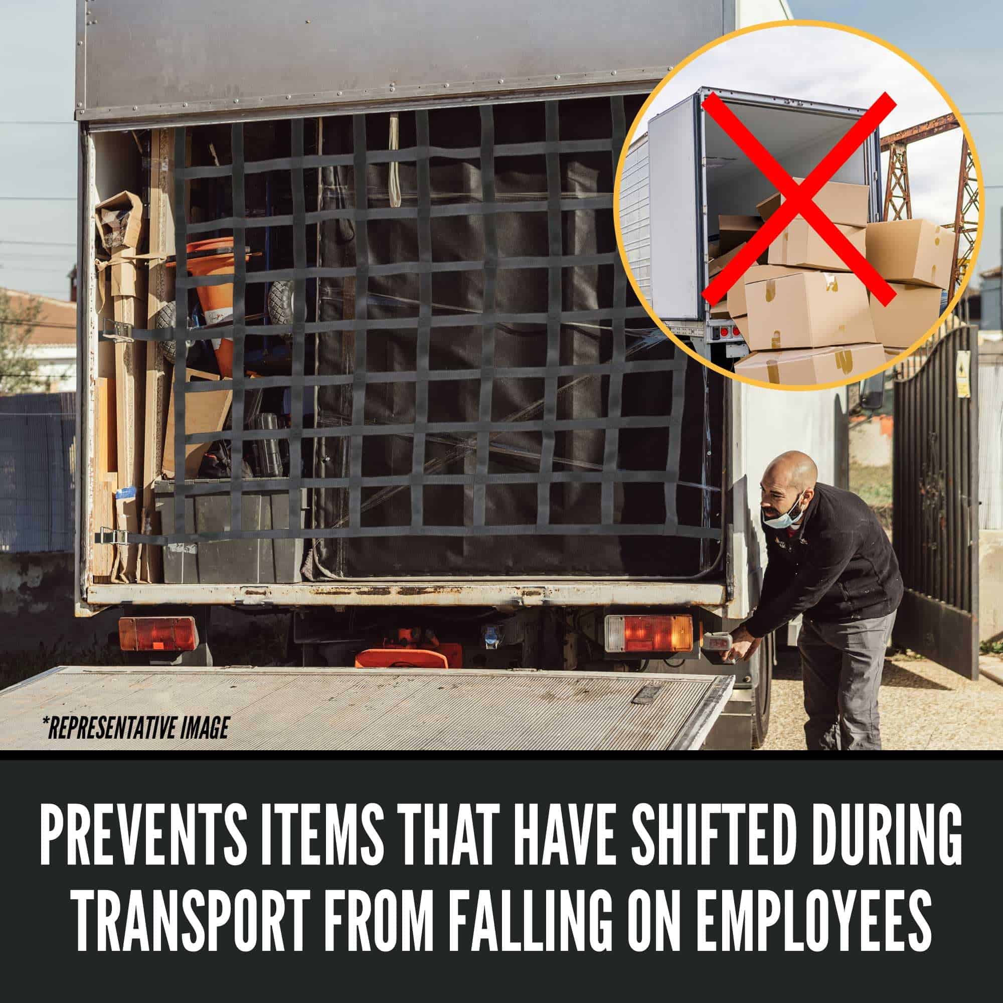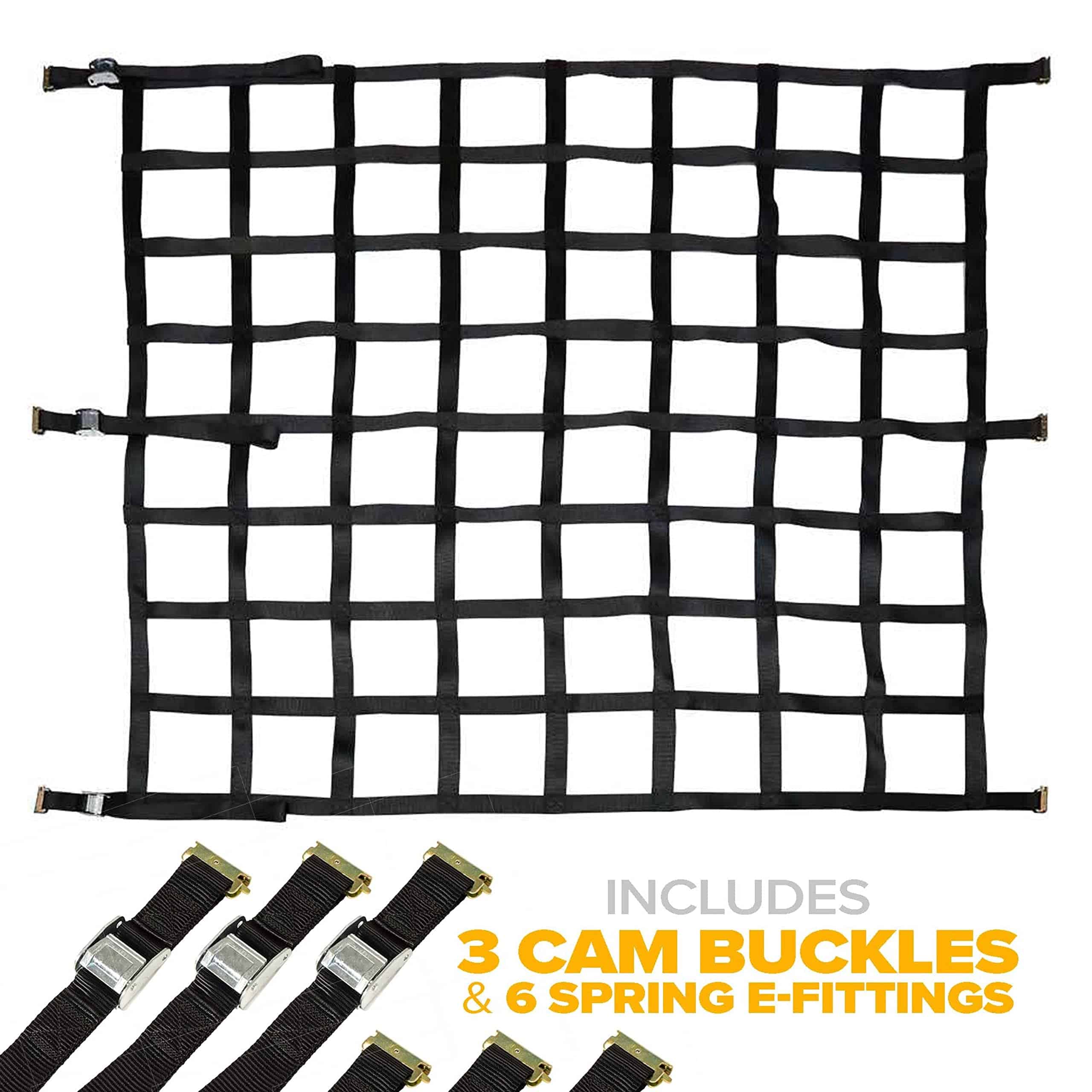 La red de carga de poliéster resistente es más grande que las redes típicas de 42″. El tamaño cuadrado de 82» x 82» está diseñado para cubrir la mayoría del remolque de arriba a abajo, por lo que es ideal para crear una sección de almacenamiento separada dentro del remolque. Las hebillas de leva cosidas y los accesorios de resorte E permiten una rápida tensión y fijación al riel E-track (no incluido). Las correas de 2″ de ancho de grado industrial proporcionan máxima resistencia con un estiramiento mínimo. También disponible en tamaño de 42″ x 82″ y 82″ x 82″ con trinquetes. ¿Necesitas una red de carga de un tamaño específico o con herrajes especializados? ¡Llama a nuestro equipo de ventas o completa el formulario en nuestra página de redes de carga personalizadas para obtener un presupuesto rápido y personalizado! Residentes de California: ADVERTENCIA