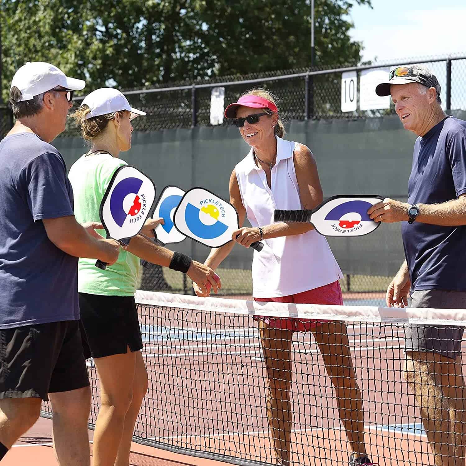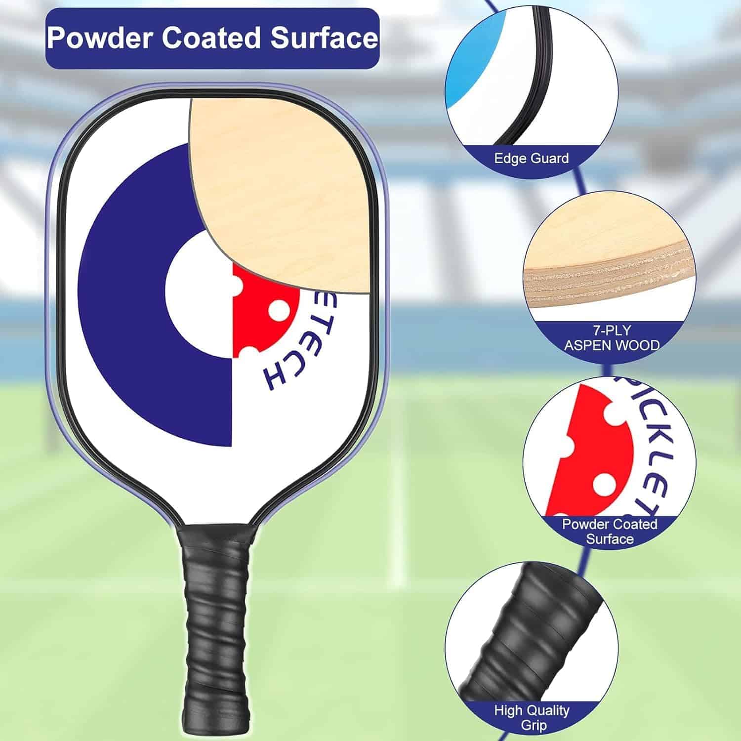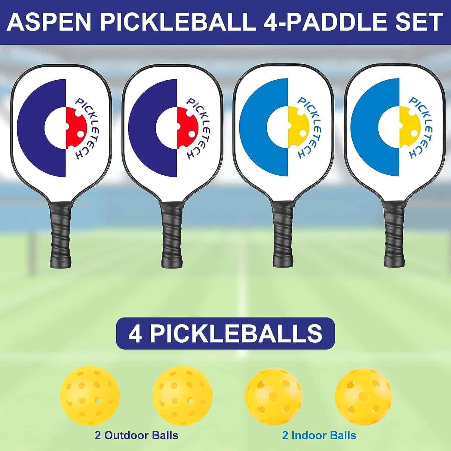 3. Juego de Paletas de Pickleball de 4 Ideal para Diversión Familiar: Hecho de madera de álamo duradera de 7 capas, este juego de 4 paletas es perfecto para juegos familiares, principiantes y actividades escolares. Con un peso de 9.5-10.5 oz, ofrecen una sensación equilibrada para jugadores de todas las edades.