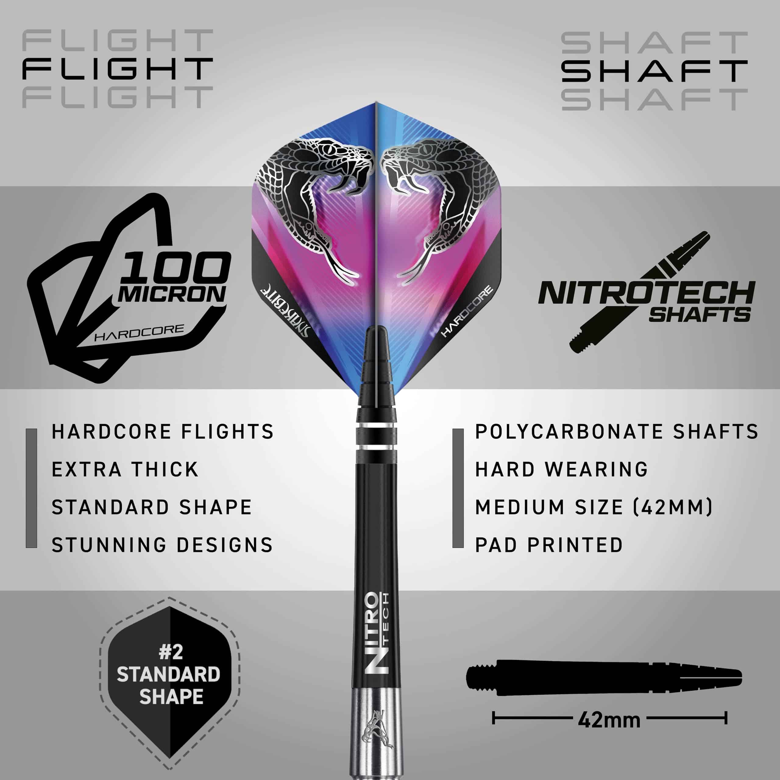 Red Dragon presenta el Juego de Dardos Peter Wright Snakebite Euro 11 de 20g, un set de alta calidad que presenta dardos de tungsteno premium. Este set incluye 3 dardos de 20g, diseñados con Ejes Red Dragon NitroTech y Vuelos Red Dragon Hardcore Snakebite. La versión Euro-11 de los dardos Snakebite es el modelo más largo y delgado hasta la fecha, especialmente diseñado para Peter Wright. Los Snakebite Euro 11 están disponibles en pesos de 20g y 24g. Añade este set de dardos de alta calidad a tu colección y mejora tu habilidad en el juego.