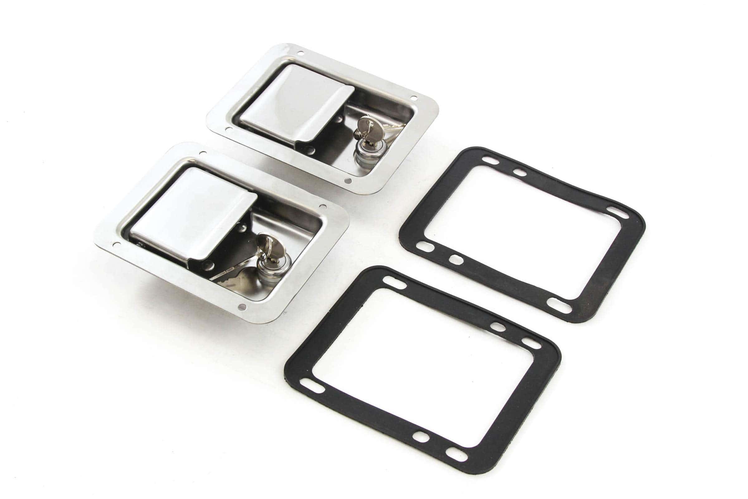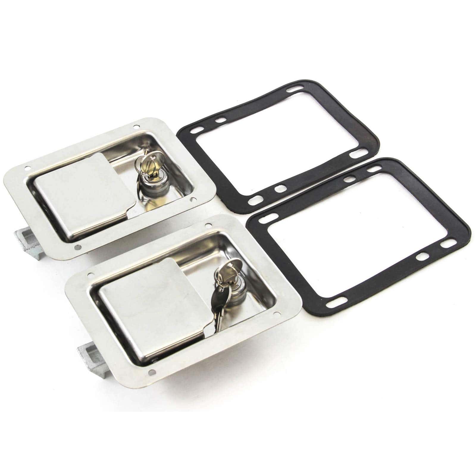 Cerraduras de Puerta de Acero Inoxidable para Remolque, Caja de Herramientas, Manija de RV, Paddle Grande de 5.5″ x 4.25″ con llave. Robusto, resistente y resistente a la intemperie – Manija de Cerradura de Paddle de Auto Red Hound de Calidad con Llaves – probada en fábrica y hecha con los mejores materiales de grado industrial. ¡Además, el producto está cubierto por una garantía de 1 año! Incluido: DOS (2) pesadas cerraduras de paddle con llaves, 2 juntas y 4 llaves coincidentes. Dimensiones exteriores 5-1/2″ x 4-1/4″; Manijas de cerradura de paddle con llaves construidas de acero inoxidable resistente a la corrosión con acabado pulido; hechas para resistir las condiciones más difíciles. Fáciles de reemplazar sus cerraduras rotas o desgastadas; ¡ideales para camiones de servicio y mecánicos, cajas de herramientas y más! Resistente y resistente a la intemperie, esta manija de cerradura puede soportar condiciones climáticas adversas.