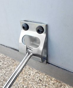 Soporte de puerta de entrada en forma de T con soporte; incluye 25 soportes. Brazo de 6″ de largo; solo soporte, tornillos no incluidos. Hecho de acero resistente; Recubierto de zinc para protección contra óxido y condiciones climáticas. La base de montaje mide 3 pulgadas por 1-3/4 pulgadas.