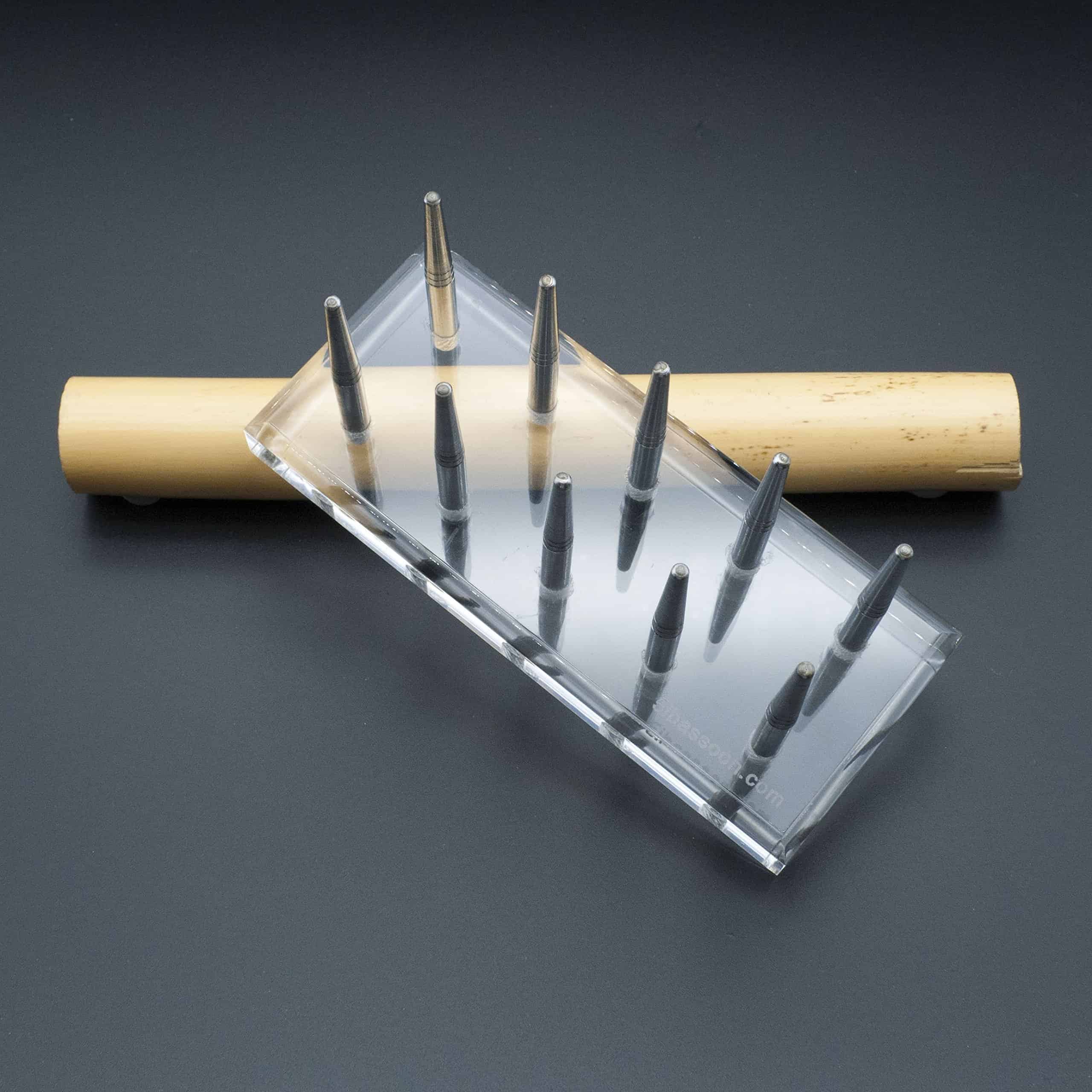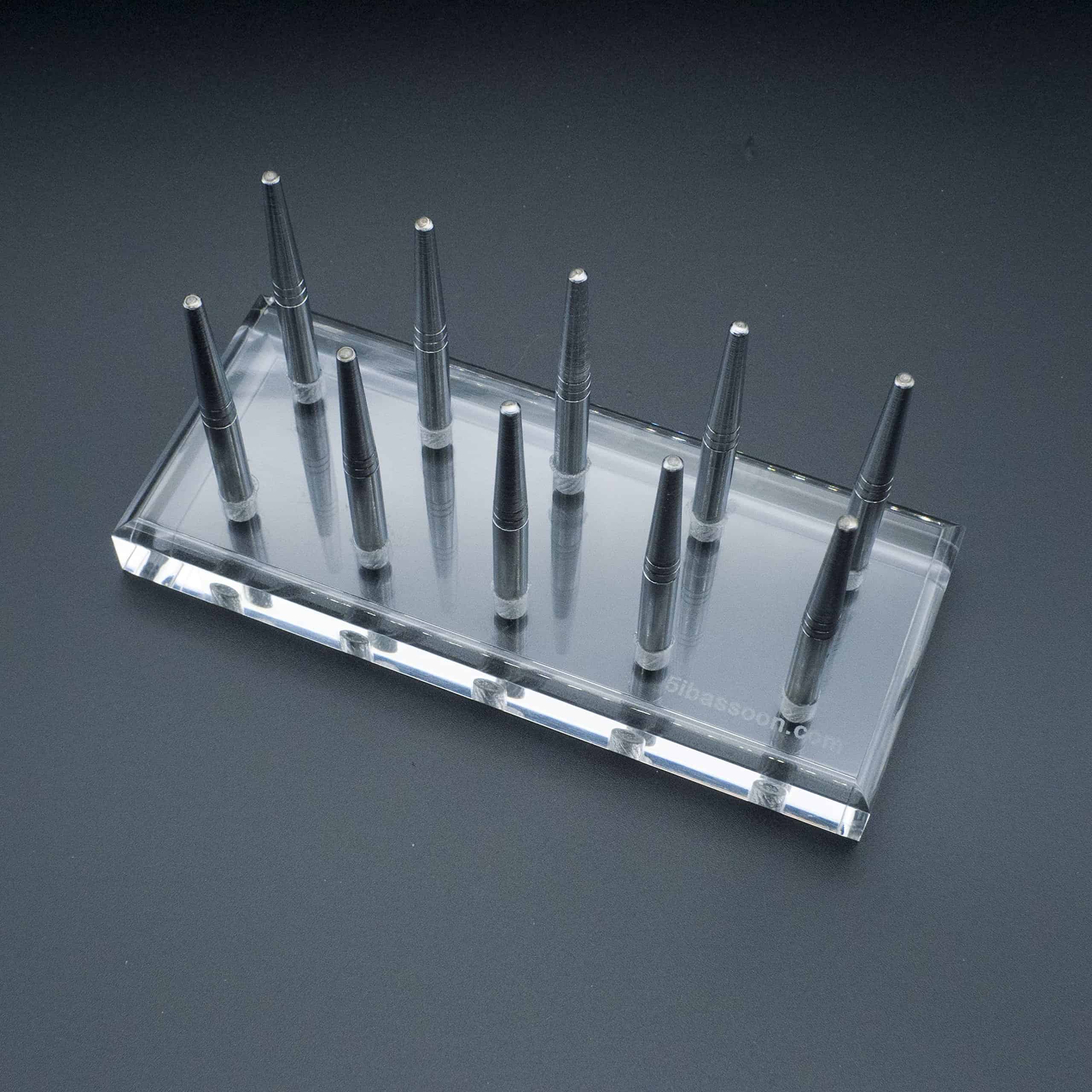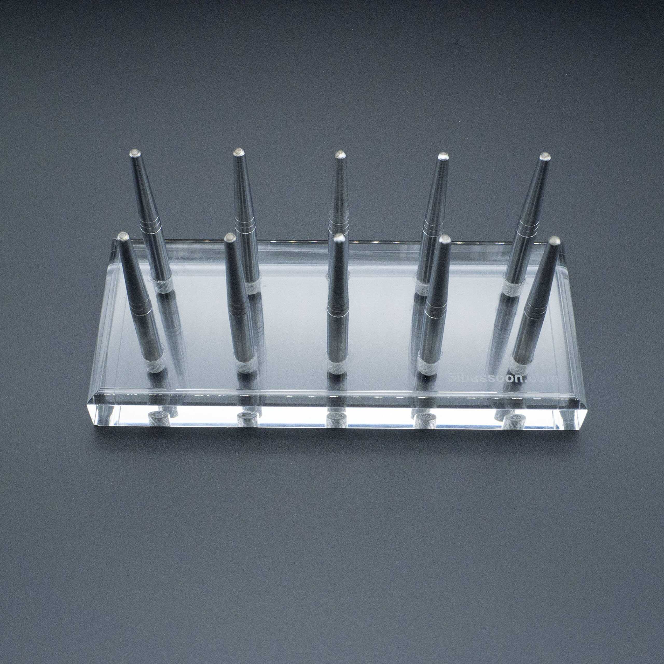 Reed123 Suministros para la Fabricación de Cañas de Fagot – Soporte de Secado Fabricado con Acero Inoxidable de Alta Calidad y Tablero de Acrílico Cristalino Pines Metálicos Extraíbles para 10 Cañas de Fagot