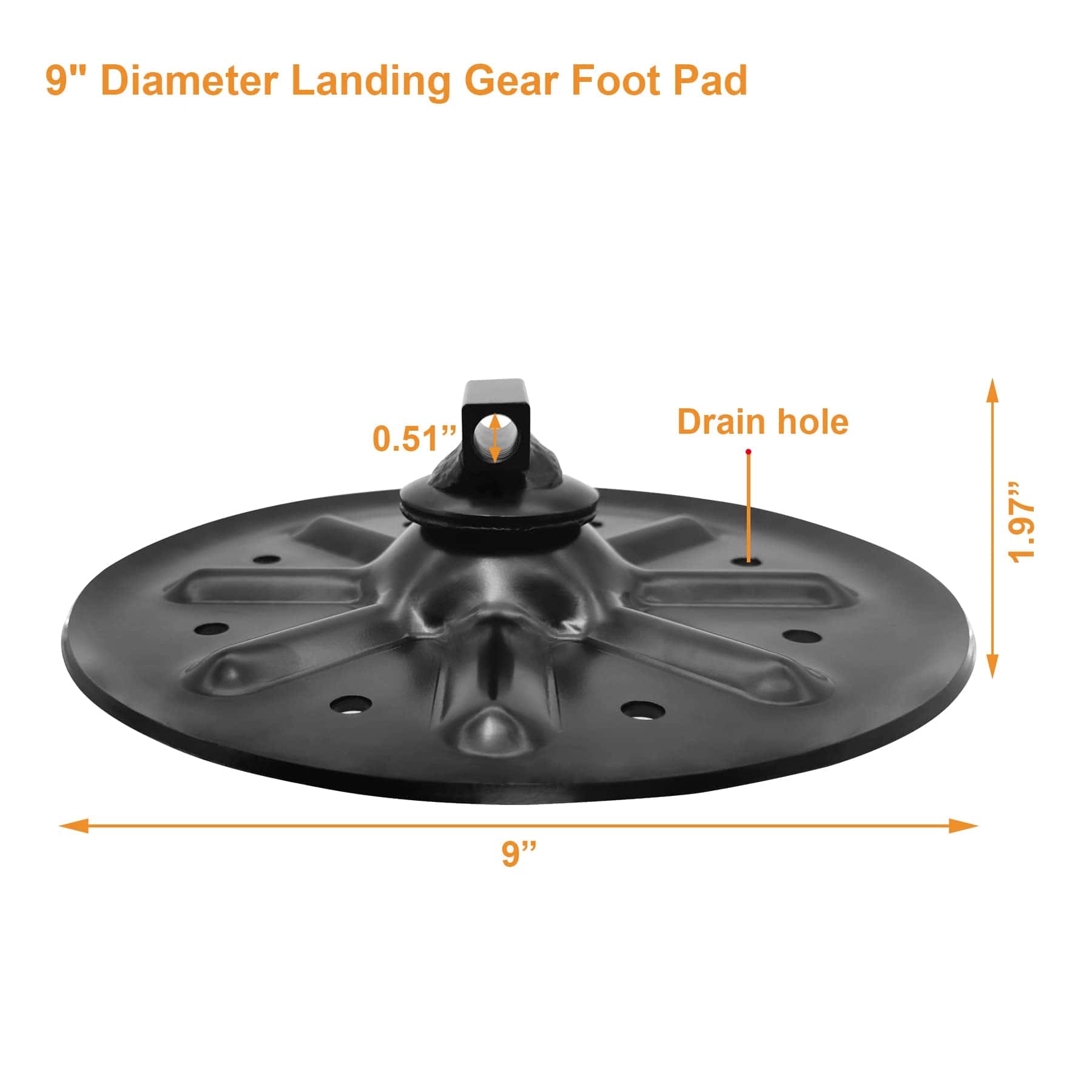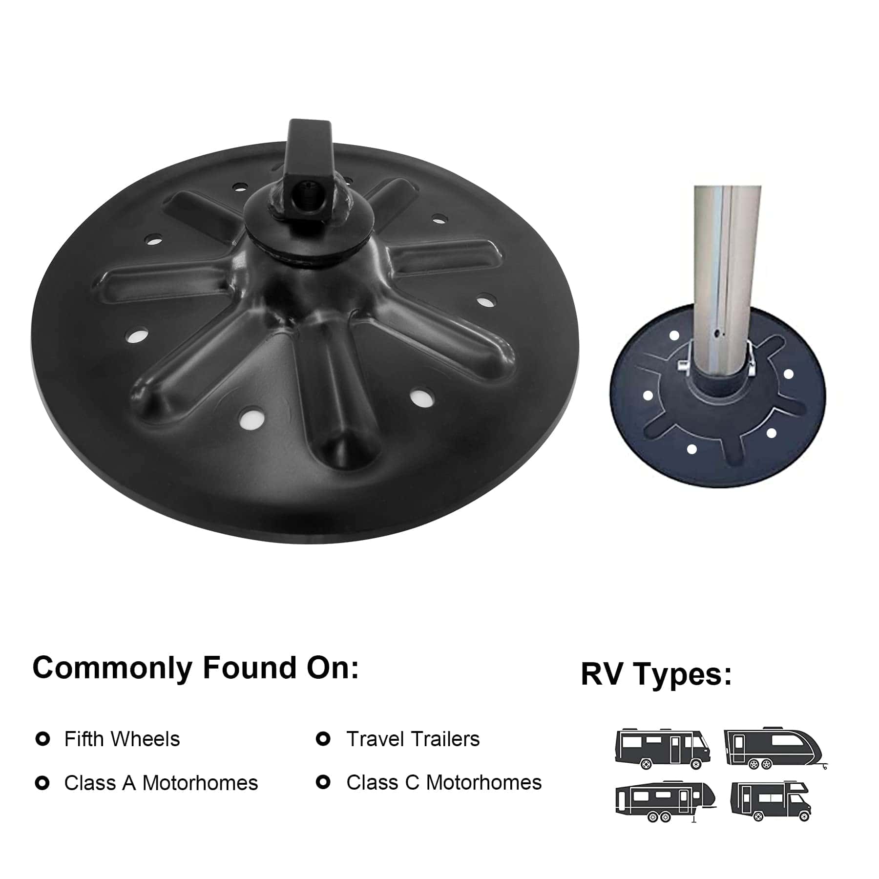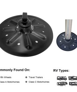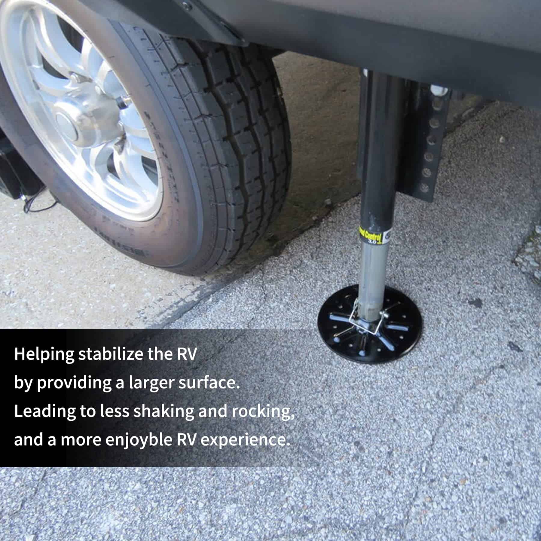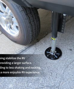 Por qué elegir nuestra almohadilla de pie de la caravana – Mayor estabilidad y capacidad. – Orificios de drenaje en la superficie para evitar la oxidación. – Super alta calidad puede prevenir la corrosión y tener una larga vida útil. – Fácil de instalar. – Garantía de 12 meses. Compatible con: Se adapta a autocaravanas de Clase A y C, remolques de viaje y RV de quinta rueda. Para uso con la mayoría de los estabilizadores de rv, reemplace el pie redondo estándar del motorhome.