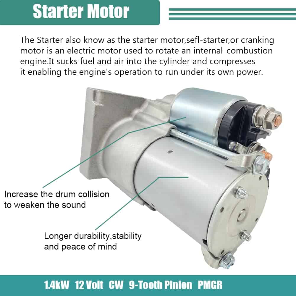 2. Arranque Especificaciones: Voltaje: 12, Rotación: CW, Dientes: 9, KW: 1.4, Tipo de Arranque: PMGR.