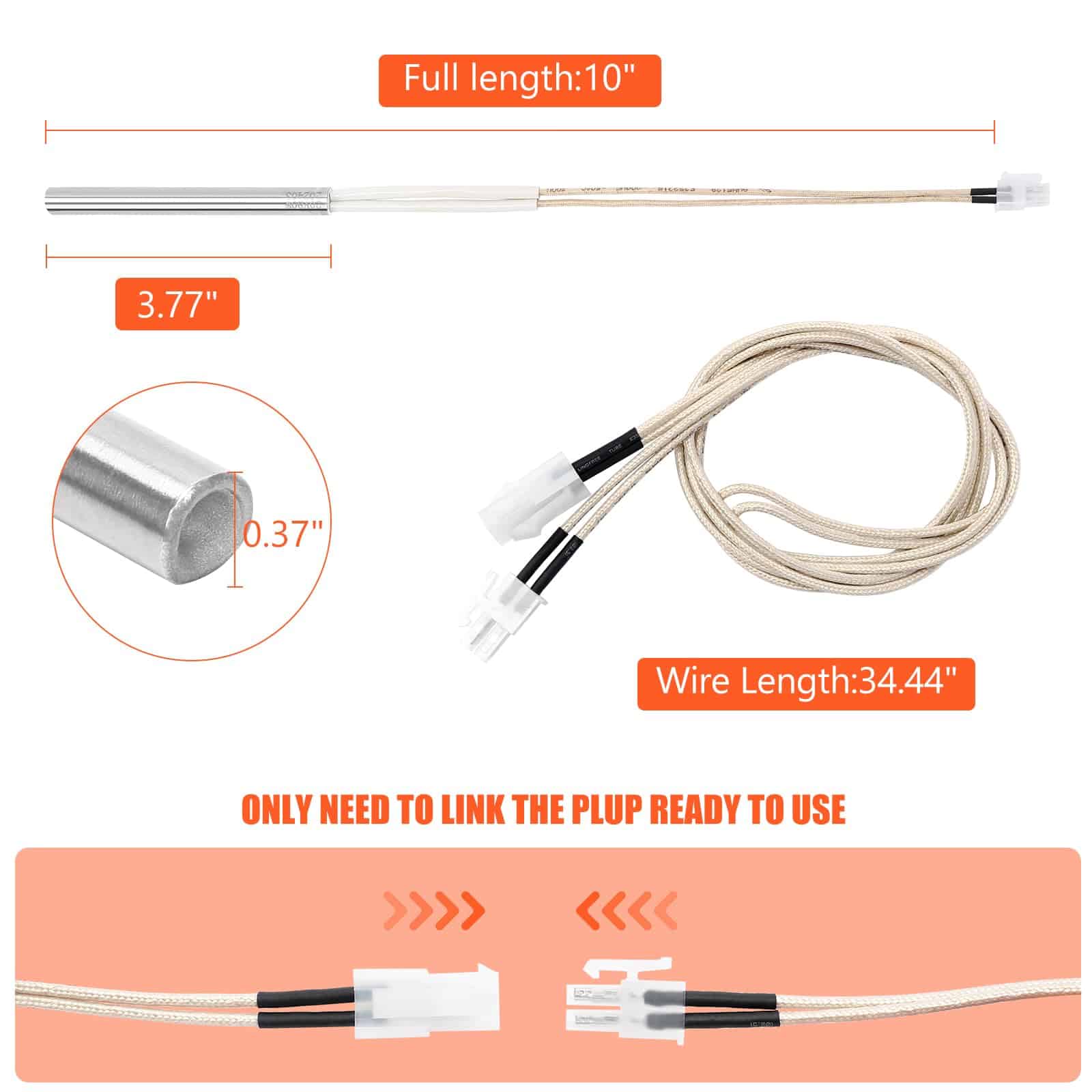 4. Fácil de instalar: Esta pieza de reemplazo del encendedor es de instalación directa. Para evitar que el hot rod de la parrilla de pellets deje de funcionar después de unas cuantas sesiones de BBQ, solo debe mostrarse 1/8 a 1/4 de pulgada de la varilla del encendedor 20V 80W en el recipiente de fuego. Limpia el polvo del recipiente de fuego para mantener tu encendedor hot rod D2 funcionando perfectamente para la ignición. También puedes consultar el video de instalación correcta en línea.