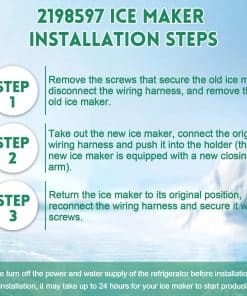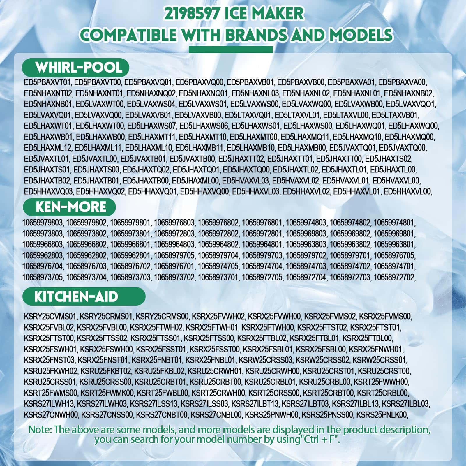 1. Marcas compatibles: El fabricante de hielo 2198597 2198598 es compatible con los refrigeradores Whirlpool/Kenmore/KitchenAid.