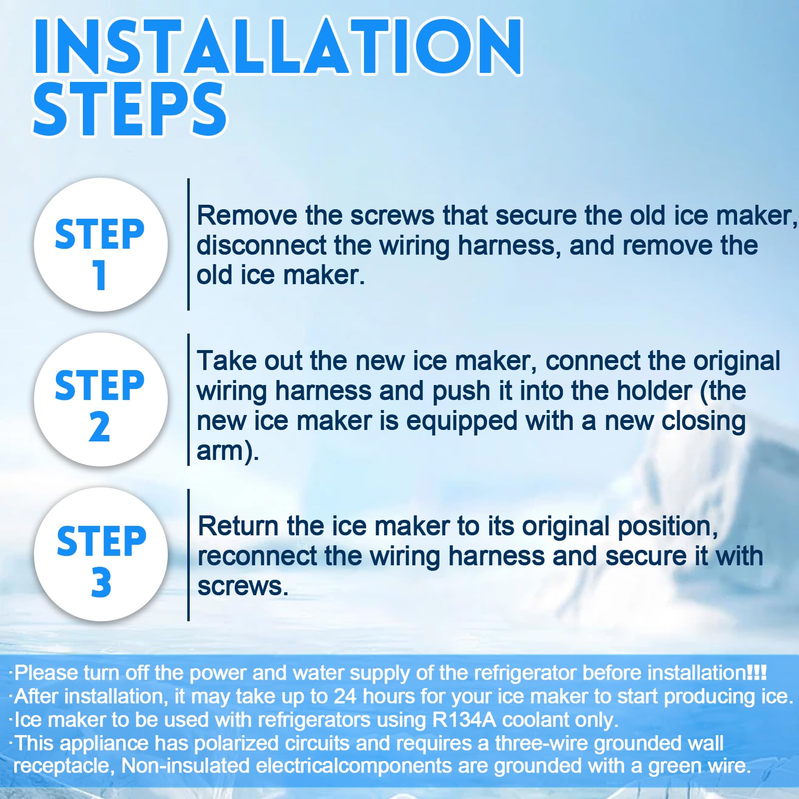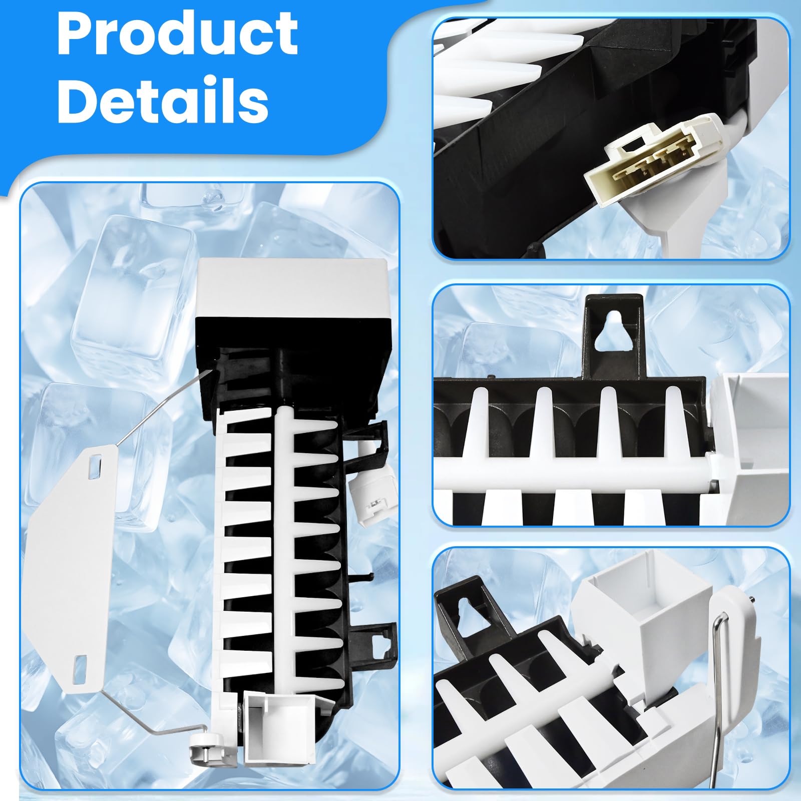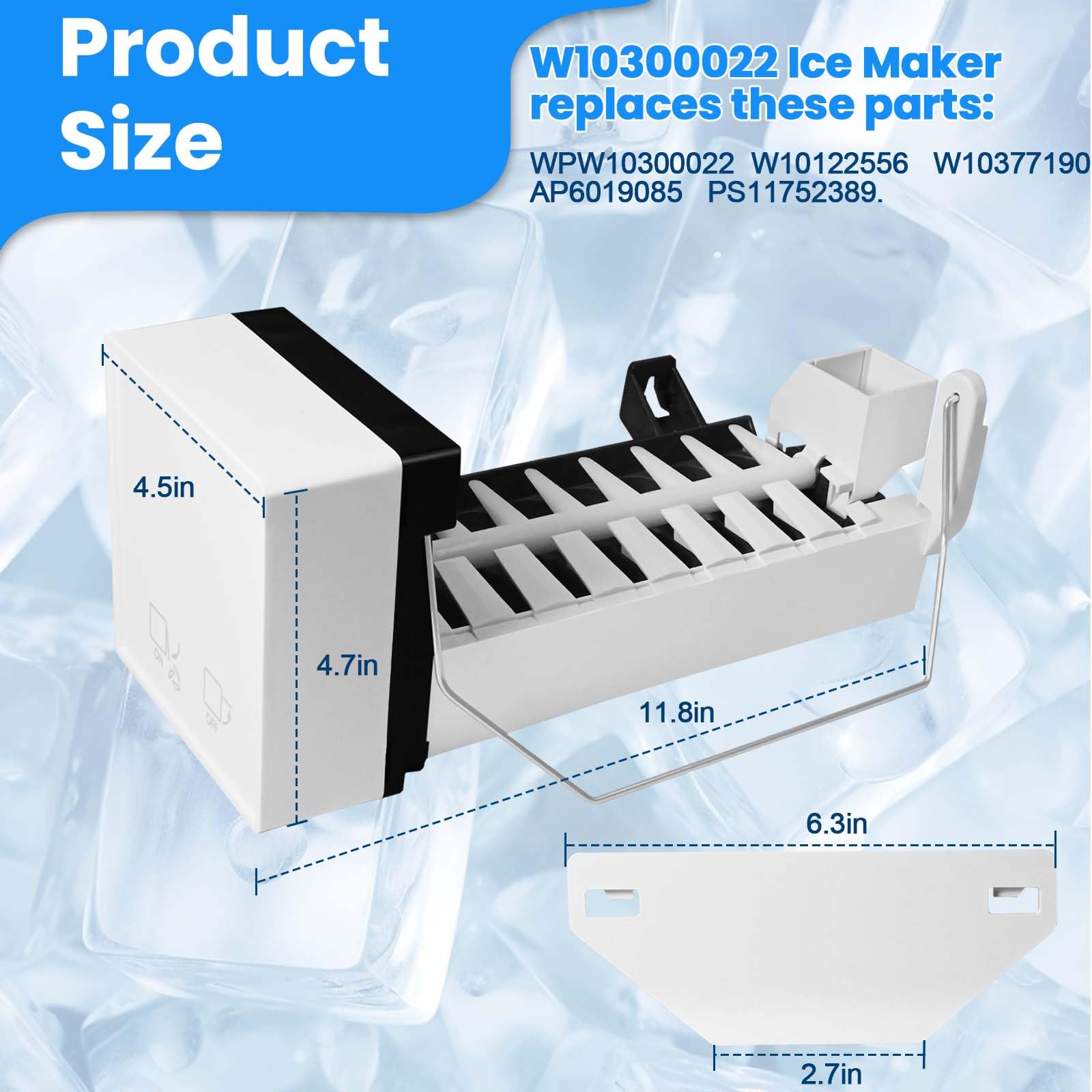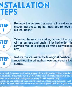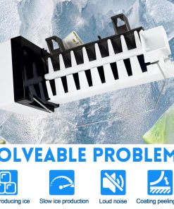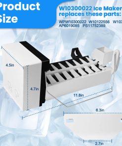 Reemplace su montaje de fabricante de hielo con este modelo W10300022 compatible con varios modelos de refrigeradores Whirlpool, Kenmore, Amana y Maytag. Este producto incluye todas las piezas necesarias para la instalación, como brazo elevador, marco, cabeza del motor y más. Resuelva problemas comunes con su fabricante de hielo, como la producción lenta de hielo o el ruido fuerte. Siga las precauciones de instalación para garantizar un proceso seguro y efectivo. Una vez instalado, su fabricante de hielo estará listo para producir hielo fresco en un plazo de 24 horas.