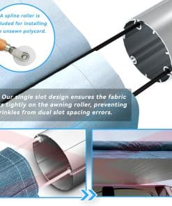 4. AJUSTE UNIVERSAL – Se adapta a la mayoría de los RV, nuestra guía de instalación ilustrada paso a paso garantiza que logres la experiencia de instalación óptima. Los accesorios incluidos son el toldo, tira de plástico y rodillo de instalación, diseñados para simplificar el proceso de instalación y garantizar un ajuste seguro.