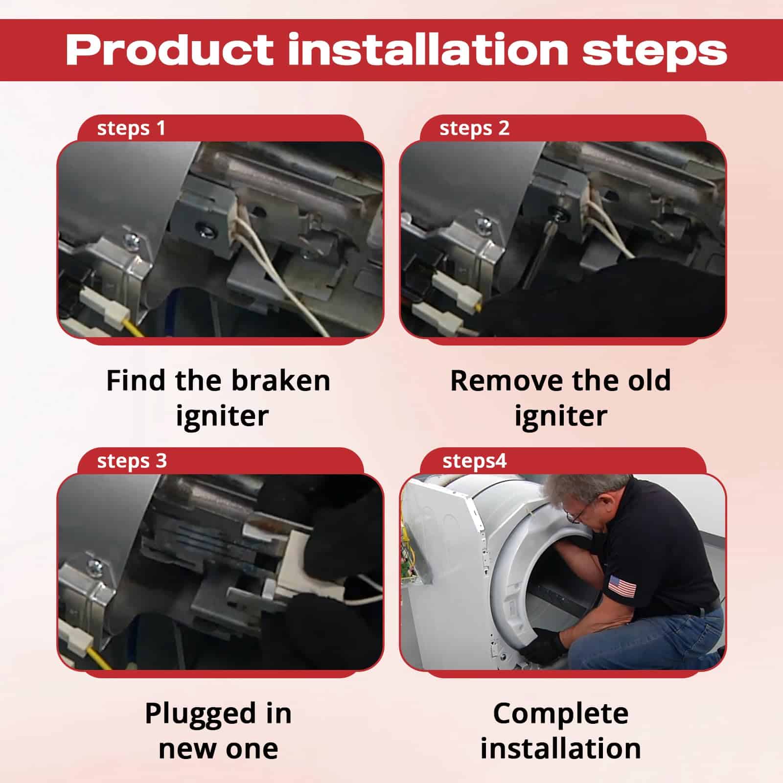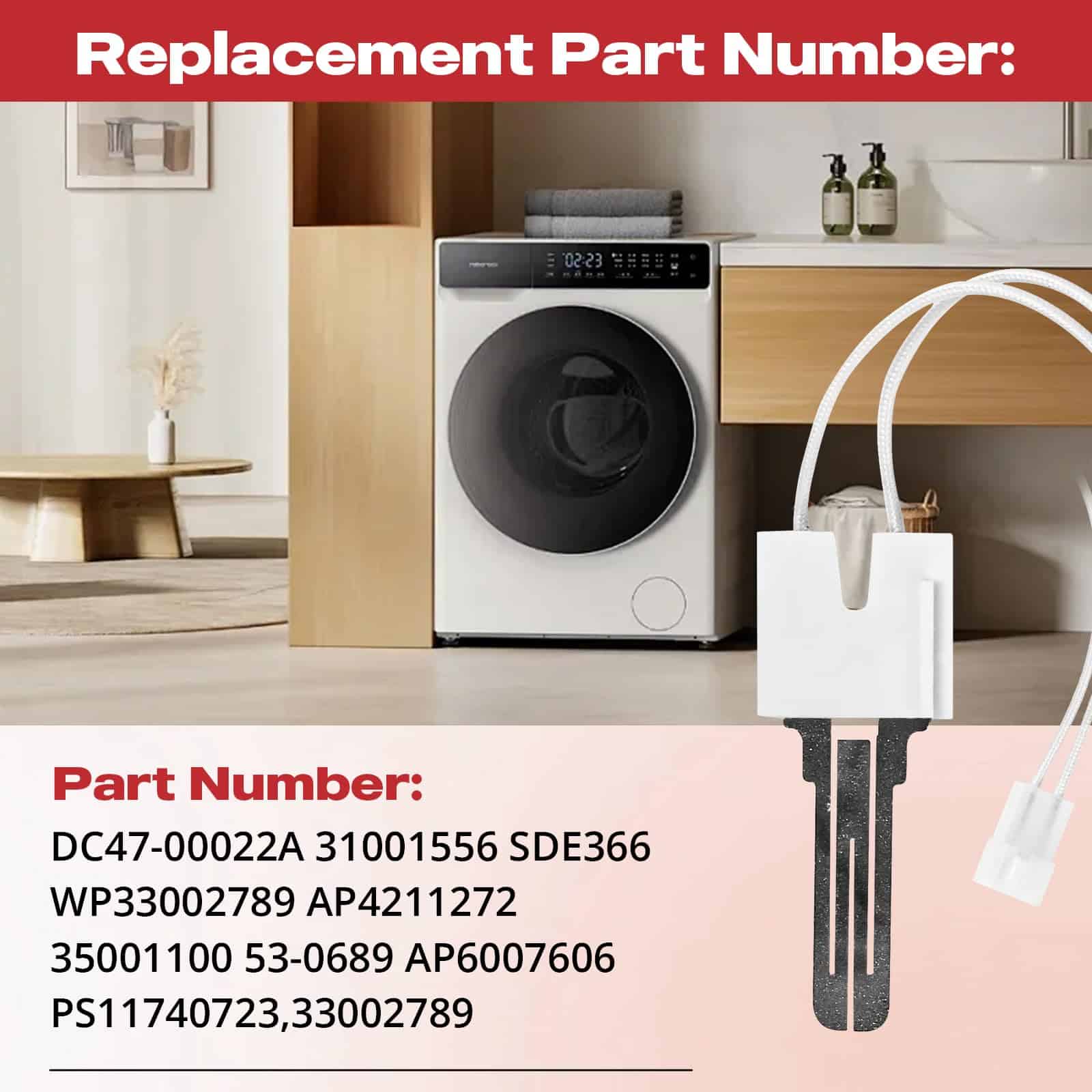 1. Repuesto Directo: Número de parte del encendedor de secadora DC47-00022A 31001556 SDE366 WP33002789 AP4211272 33002789 35001100 53-0689 AP6007606 PS11740723, compatible con Samsung, Sears Kenmore, Maytag, Magic Chef, Amana, Inglis, Norge, Admiral, Crosley.