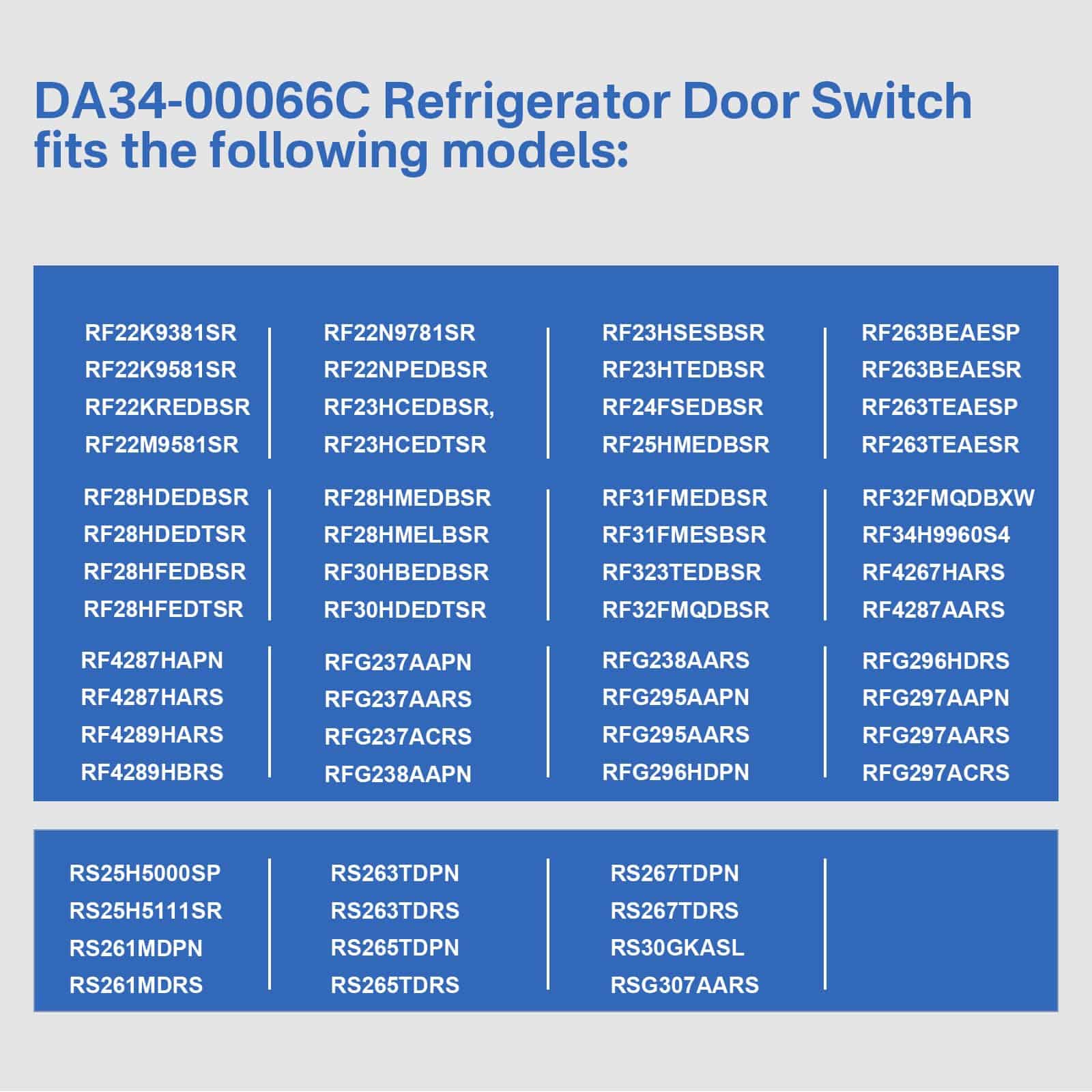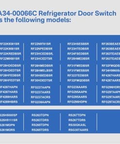 Se adapta a los siguientes modelos (no se enumeran todos los modelos aplicables): RF22K9381SR, RF22K9581SR, RF22KREDBSR, RF22M9581SR, RF22N9781SR, RF22NPEDBSR, RF23HCEDBSR, RF23HCEDTSR, RF23HSESBSR, RF23HTEDBSR, RF24FSEDBSR, RF25HMEDBSR, RF263BEAESP, RF263BEAESR, RF263TEAESP, RF263TEAESR, RF28HDEDBSR, RF28HDEDTSR, RF28HFEDBSR, RF28HFEDTSR, RF28HMEDBSR, RF28HMELBSR, RF30HBEDBSR, RF30HDEDTSR, RF31FMEDBSR, RF31FMESBSR, RF323TEDBSR, RF32FMQDBSR, RF32FMQDBXW, RF34H9960S4, RF4267HARS, RF4287AARS, RF4287HAPN, RF4287HARS, RF4289HARS, RF4289HBRS, RFG237AAPN, RFG237AARS, RFG237ACRS, RFG238AAPN, RFG238AARS, RFG295AAPN, RFG295AARS, RFG296HDPN, RFG296HDRS, RFG297AAPN, RFG297AARS, RFG297ACRS, RFG297HDPN, RFG297HDRS, RFG298AAPN, RFG298AARS, RFG298HDPN, RFG298HDRS, RFG299AARS, RFG29PHDRS, RFG29THDRS, RS25H5000SP, RS25H5111SR, RS261MDPN, RS261MDRS, RS263TDPN, RS263TDRS, RS265TDPN, RS265TDRS, RS267TDPN, RS267TDRS, RS30GKASL, RSG307AARS, RSG309AARS.