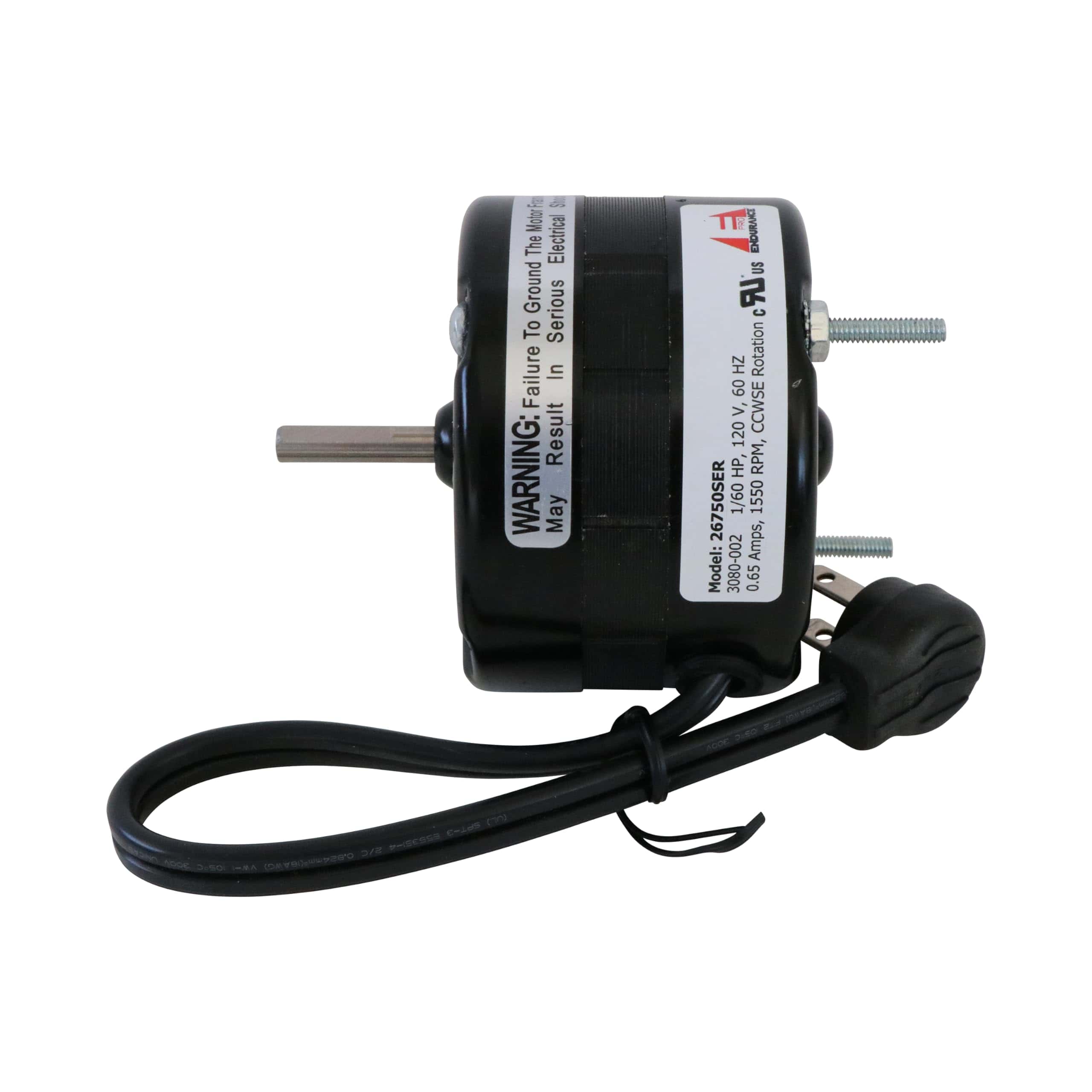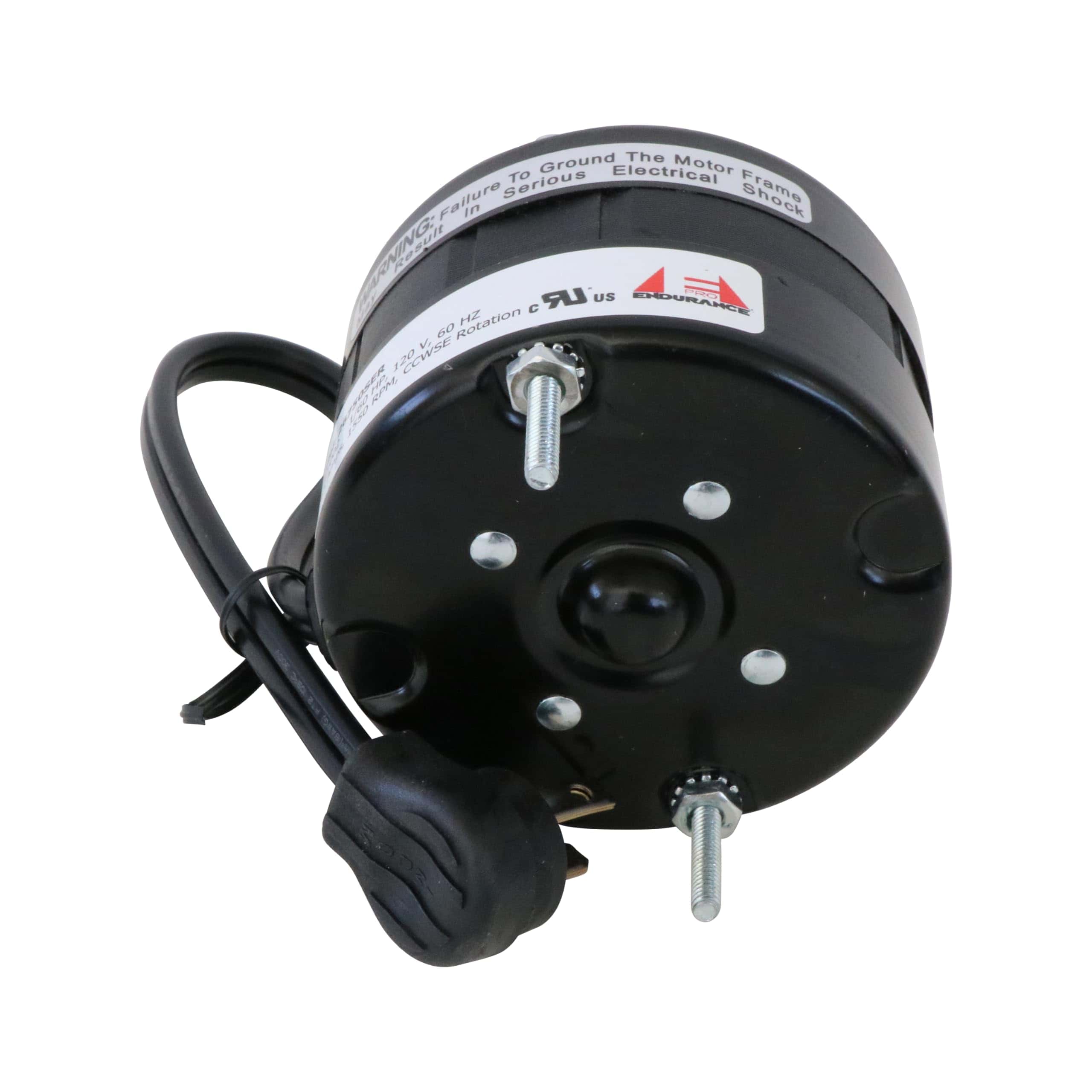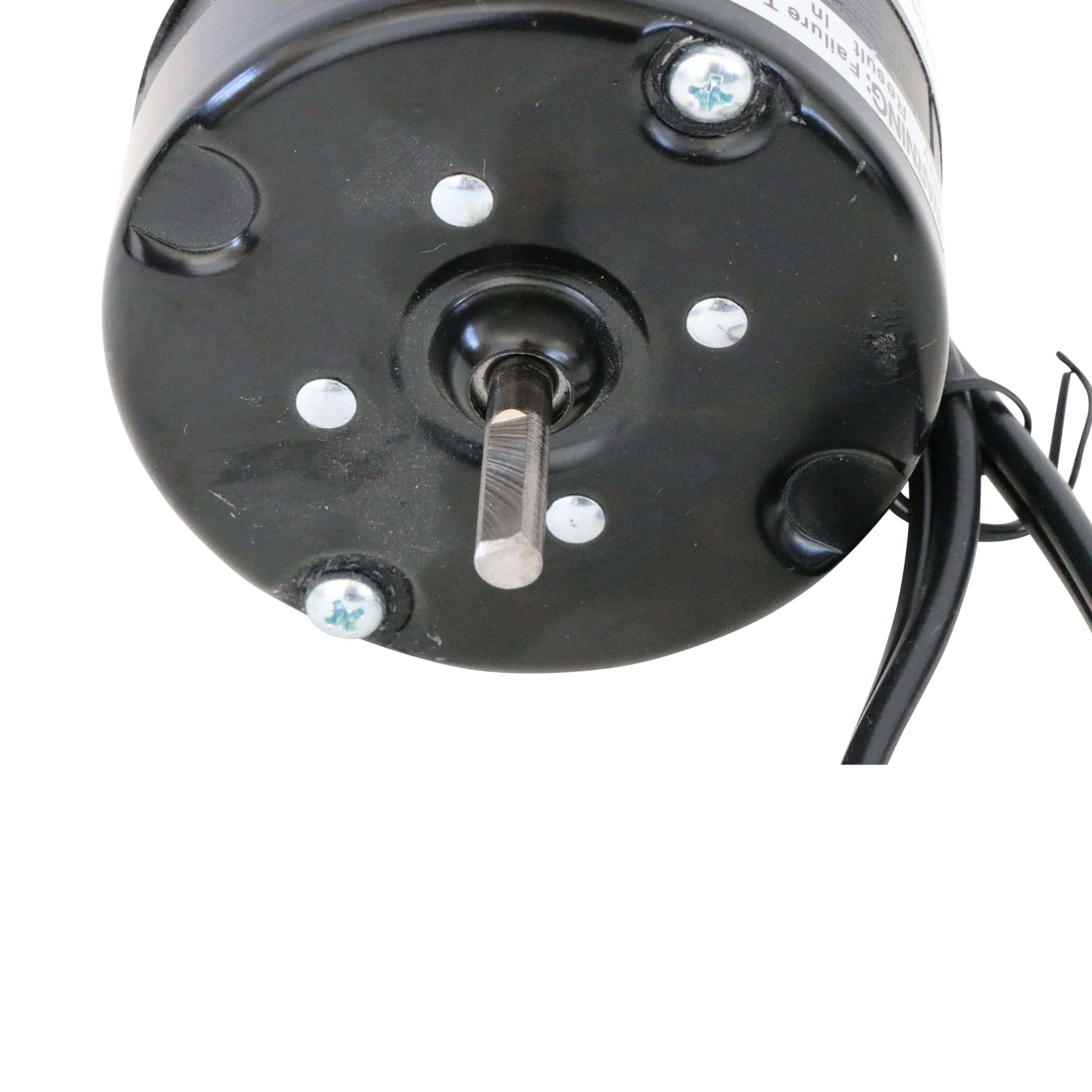 4. ESPECIFICACIONES DEL PRODUCTO: Rotación de una sola velocidad CCW viendo el extremo del eje, 120 voltios 1/60 HP, 1550 RPM, 60 HZ, 0.65 Amperios, Motor de diámetro de 3-1/3 pulgadas de largo de cuerpo 2-1/8 pulgadas Enchufe de 2 clavijas, eje de 1/4 pulgadas de diámetro x 1.187 pulgadas de largo, montaje de pernos de 3 pulgadas de centro a centro en el extremo opuesto del eje.