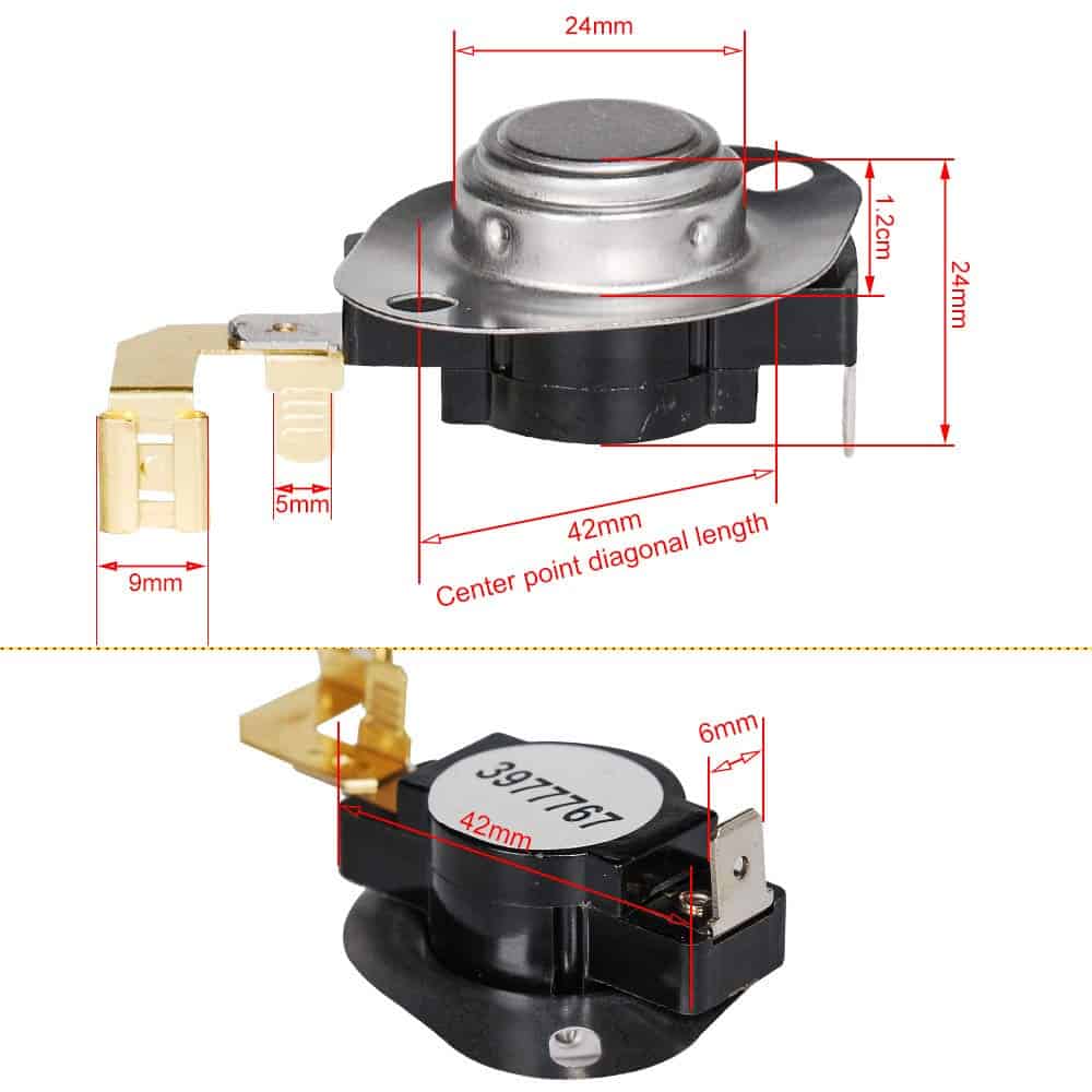 Descripción: 3392519 Fusible térmico de secadora reemplaza parte 3388651, 3392519, 694511, 80005, WP3392519VP. 3387134 Termostato de Ciclo de Secadora reemplaza parte 306910, 3387134, 3387135, 3387139, WP3387134VP. 3977767 Termostato de Secadora reemplaza parte WP3977767VP, 3399693, 3977767 3399848 kit de termostato de secadora reemplaza parte 2651, 3399848, AP3094244, 279816VP 3977393 Fusible térmico de secadora reemplaza parte WP3977393 3977393 Funciona para las marcas más populares: Kenmore, Roper, KitchenAid, Crosley, Maytag, Estate, Inglis, Amana, Admiral, Chef. Fácil de instalar, es un excelente kit de reparación para secadora, ahorra tiempo y dinero. El paquete incluye: 1 x 3977767 Termostato de Secadora 1 x 3387134 Termostato de Ciclo de Secadora 1 x 3392519 Fusible térmico de Secadora 1 x 3399848 Termostato de secadora 1 x 3977393 Fusible térmico de secadora Nota: Estas son piezas de repuesto de mercado de accesorios no originales, por favor verifique el tamaño para verificar la compatibilidad antes de ordenar.