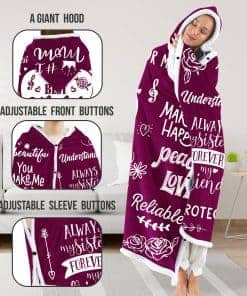 En busca del regalo perfecto para tu mamá, que parece tenerlo todo Ya sea para una ocasión especial como el Día de la Madre, Cumpleaños, Navidad o simplemente para mostrar tu amor, esta acogedora manta con capucha con su encantador diseño seguro iluminará el rostro de tu mamá cuando la reciba. Envuelve a tu mamá en pura comodidad y un hermoso diseño adornado con palabras y frases de amor. Esta encantadora manta diseñada para ser uno de los mejores regalos del Día de la Madre de una hija o hijo, un atento regalo del Día de San Valentín, una sorpresa de cumpleaños, o un regalo Navideño conmovedor. Este poncho de manta de forro polar excepcionalmente suave y esponjoso está diseñado para una mamá que aprecia los regalos pensativos. El exquisito tejido de forro polar, complementado por bordes mullidos, no solo proporciona calor; también proporciona sonrisas, alegría y un profundo sentido de amor y comodidad. Con dimensiones de 50×60 pulgadas, esta manta es un regalo único para todas las mamás. Su cálido y acogedor tejido de microfibra y sherpa la hacen perfecta para acurrucarse en la cama, en el sofá o al aire libre. También puede funcionar como un elegante manto. Para garantizar la satisfacción del cliente, si no estás encantado con estas increíbles mantas, devuélvelas y te reembolsaremos el 100% del precio de compra. Apuntamos alto y haremos todo lo posible para mantener a nuestros clientes felices. Y nuestra promesa, como un árbol familiar, es tan sólida como el roble.