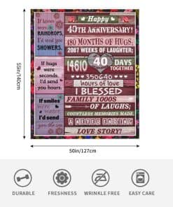 40 ANIVERSARIO DE BODAS DE RUBÍ – El 40 aniversario de bodas de rubí es un hito que se debe celebrar. Esta manta será una continuación y testimonio del amor de la pareja, el texto romántico registra el tiempo que han estado juntos. El propósito de esta manta de regalo de 40 aniversario no es solo para dar calor sino también para traer sonrisas, coraje y amor. Será un regalo perfecto para aniversario de bodas, Día de San Valentín, Día de la Madre, Día del Padre, Navidad, Año Nuevo, Acción de Gracias y más.