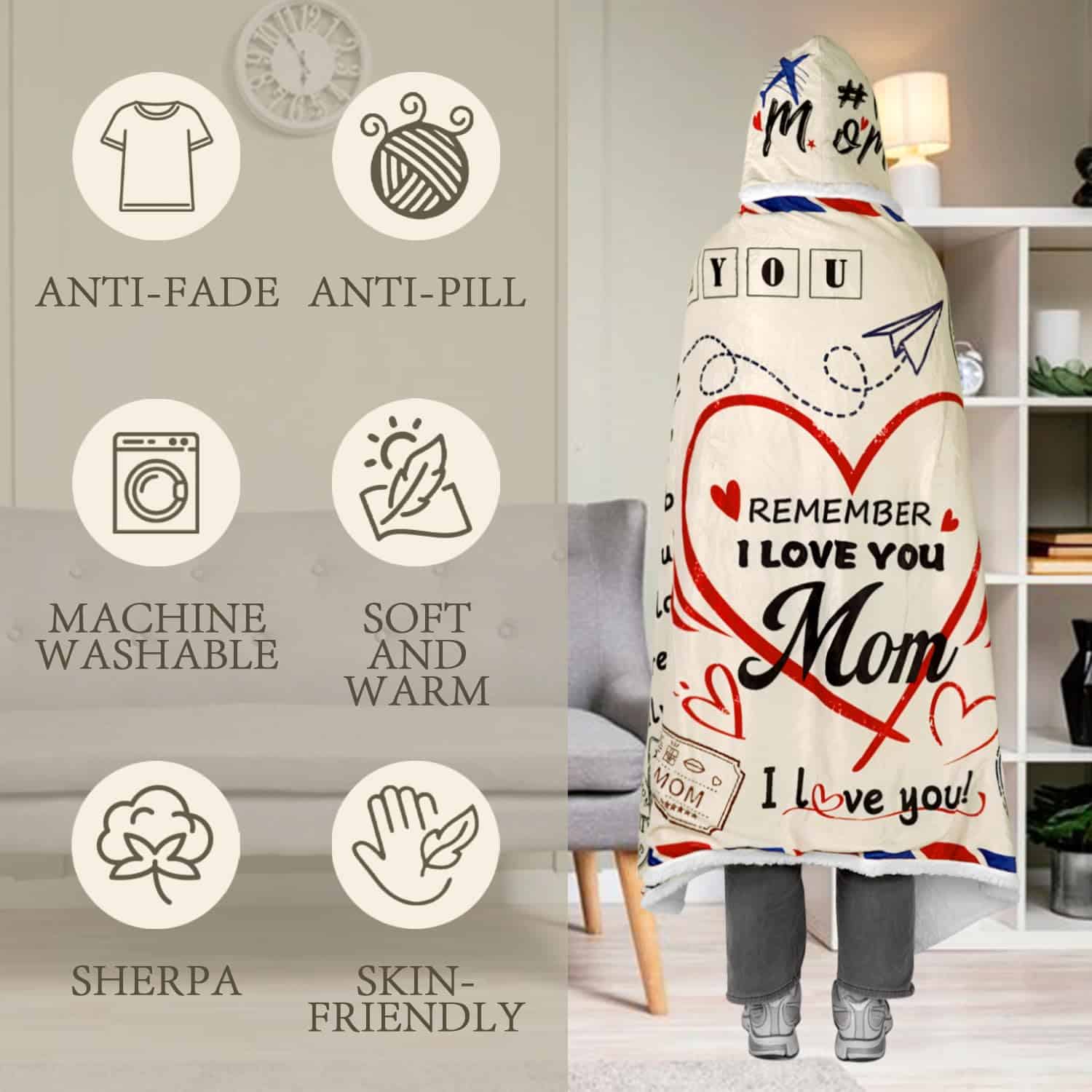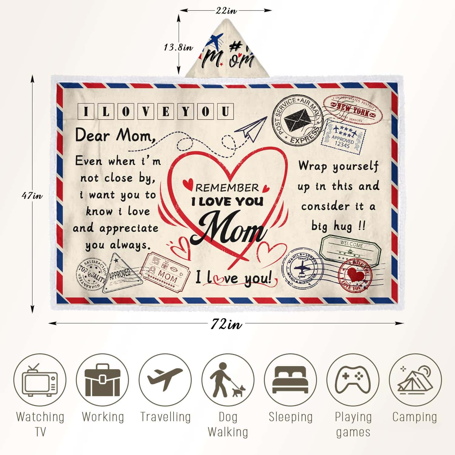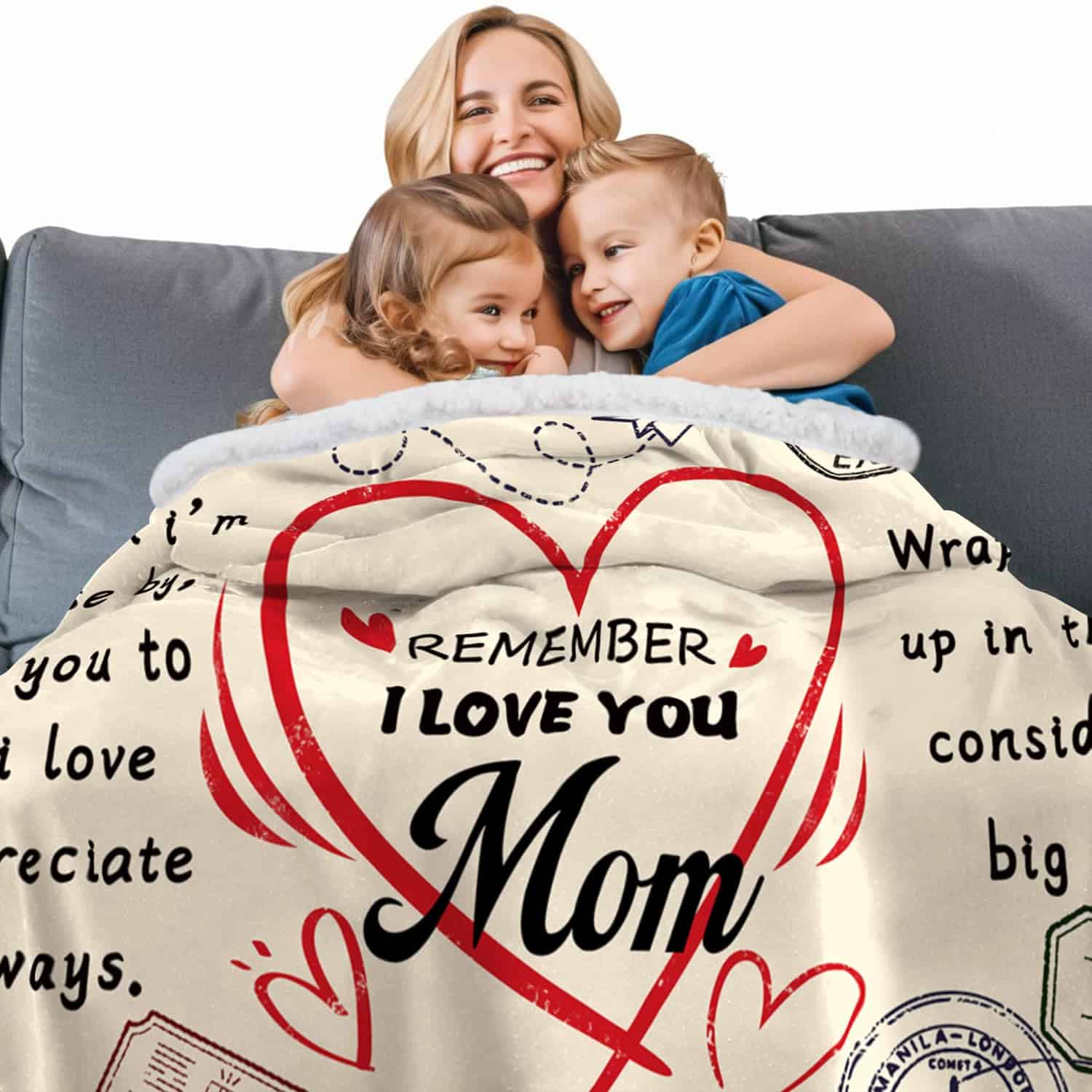 1. Regalos del Día de la Madre para Mamá: Regalos de Navidad/Regalos del Día de la Madre para Mamá, Hermosamente impreso con el texto: Querida Mamá, incluso cuando no estoy cerca, quiero que sepas que te quiero y te aprecio siempre. Abrázate con esto y considéralo un gran abrazo. Te quiero y tu mamá seguramente lo apreciará. La intención de esta manta no es solo para brindar calor sino también un sonrisa, alegría y sensación de amor.