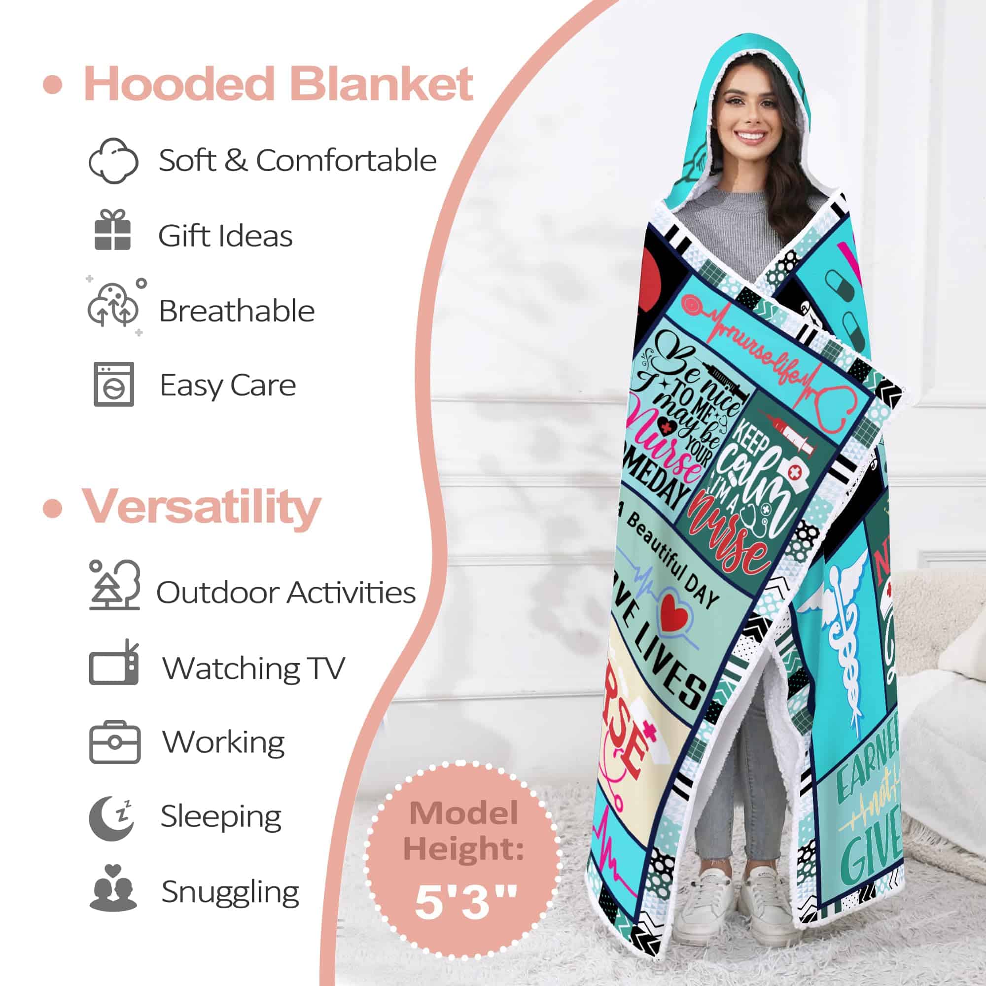 2. Material Premium: Hecho con forro de felpa suave, proporciona una experiencia de uso cálida y cómoda. Esta manta con capucha de Enfermera es suave al tacto y suave en la piel. También es amigable con las mascotas, lo que lo hace perfecto para disfrutar de acogedores momentos con tus amigos peludos.