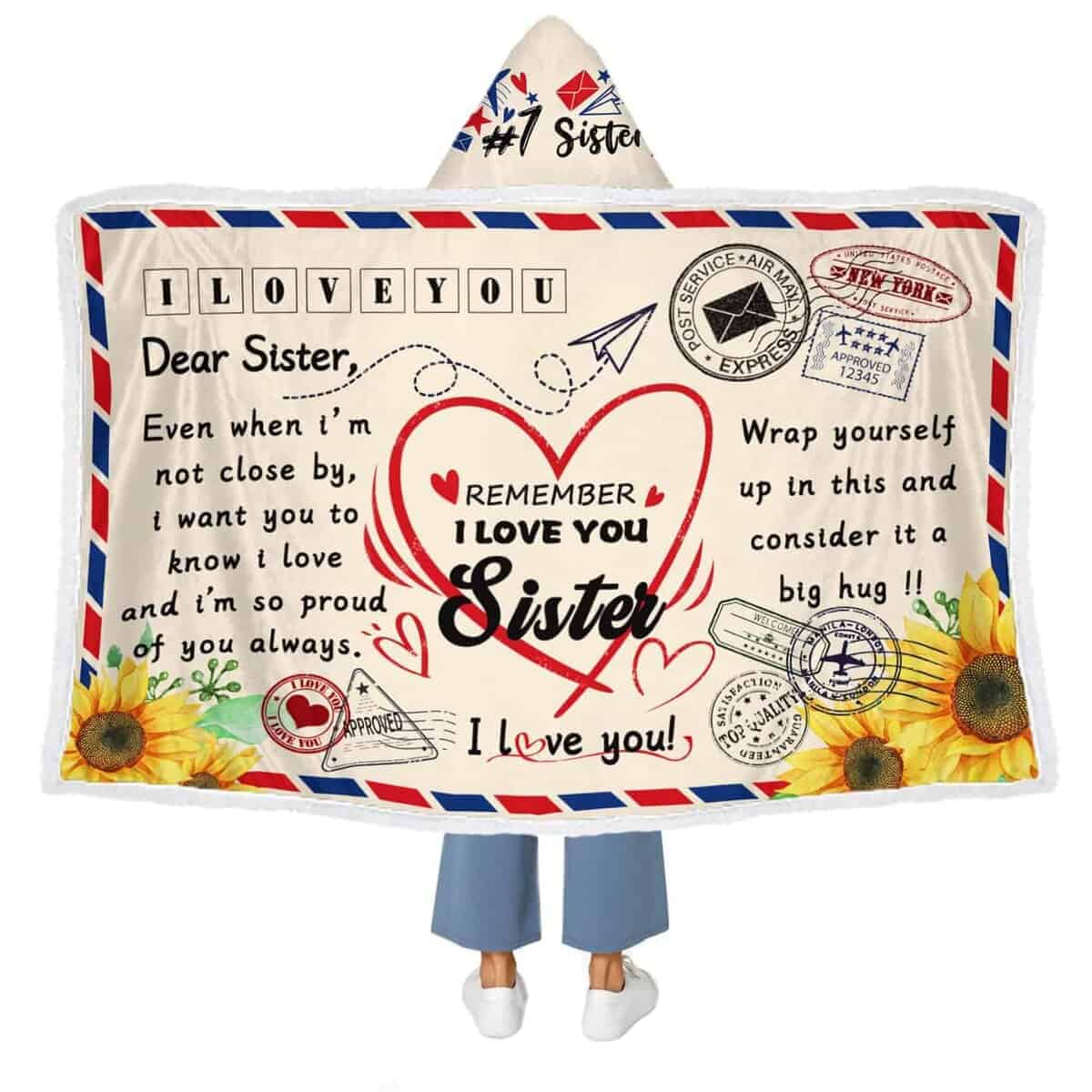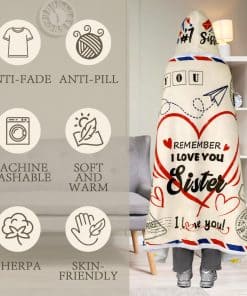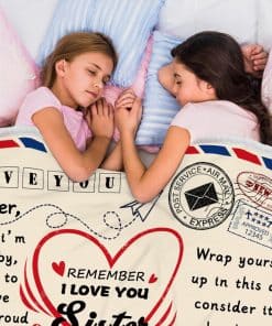 1. Regalos para Hermana: Regalos de Navidad/Regalos del Día de San Valentín/Regalos de Aniversario de Bodas para Hermana, Impresos hermosamente con el texto: Querida Hermana, aunque no esté cerca, quiero que sepas que te amo y estoy muy orgullosa de ti siempre. Envuélvete en esto y considéralo un gran abrazo. Te amo y a tu hermana seguramente le gustará. La intención de esta manta no es solo traer calidez sino también sonrisas, alegría y sentir amor.
