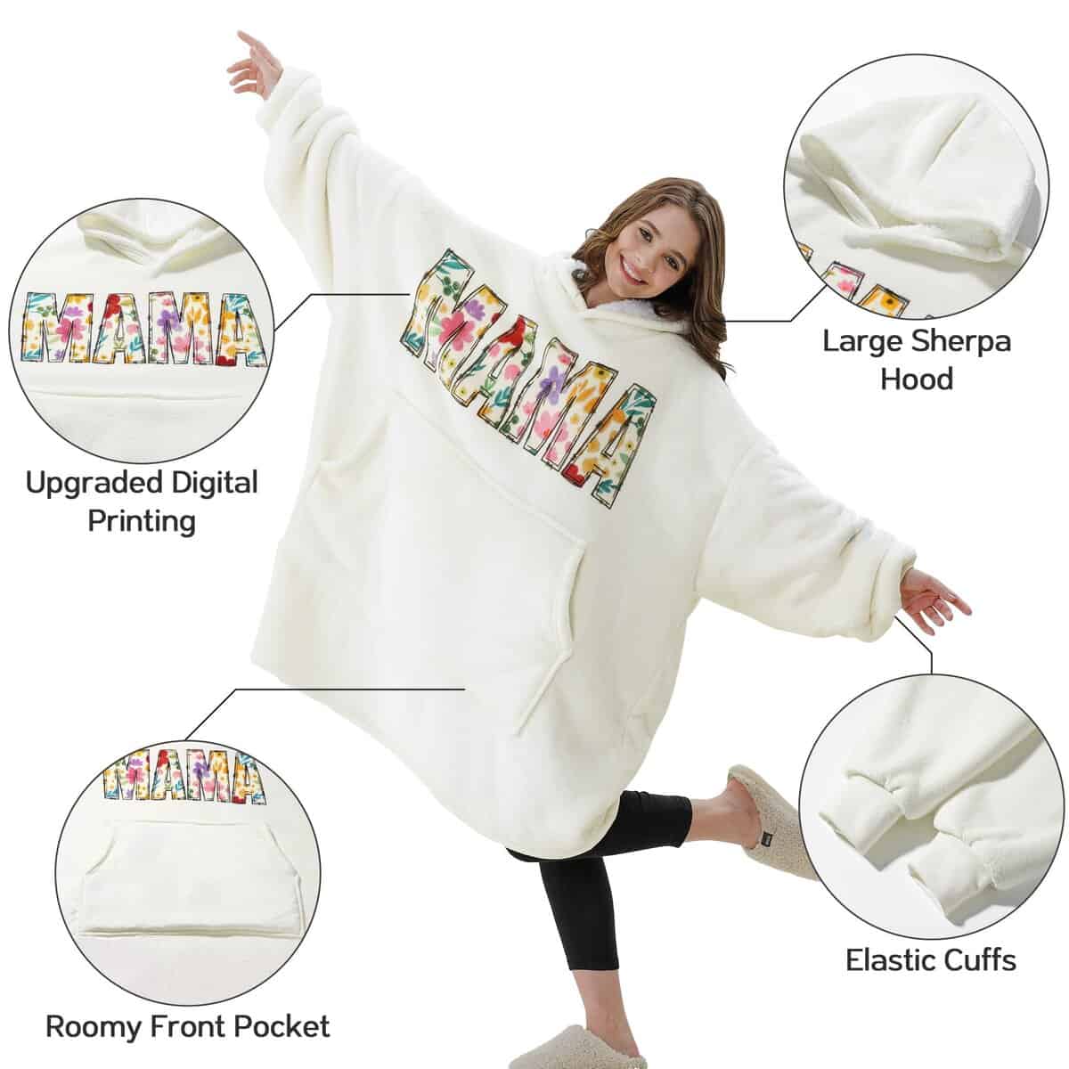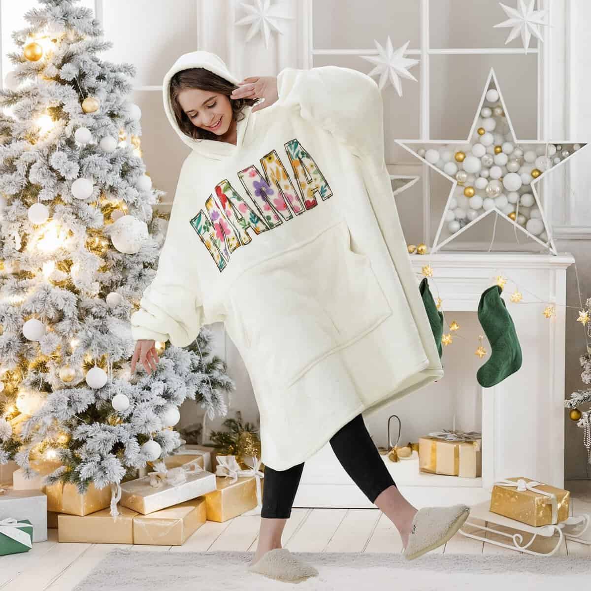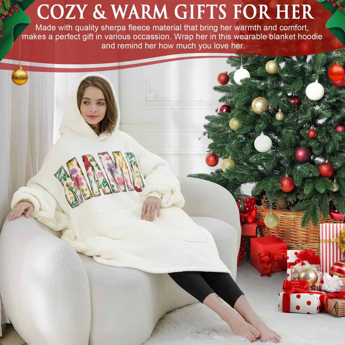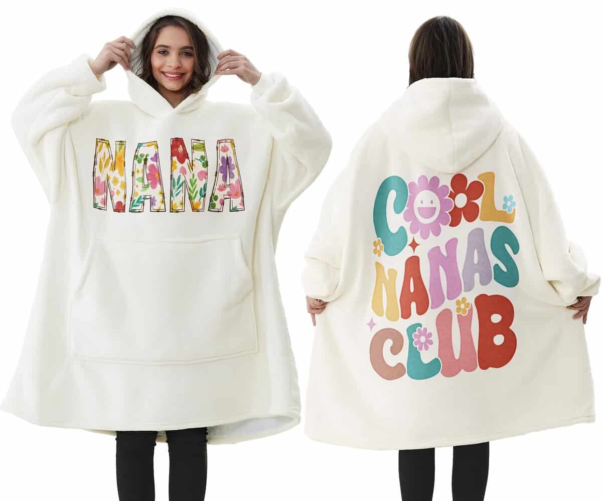Esta es una descripción larga de la manta con capucha para nana, que es el regalo perfecto para la abuela en varias ocasiones, como San Valentín, Cumpleaños, Navidad y Acción de Gracias. Diseñado con una combinación de vellón de franela suave y forro de felpa cálida, esta manta con capucha garantiza calidez y comodidad en invierno. El diseño extragrande de la manta se adapta a todas las formas y tamaños, lo que la hace adecuada para adultos y adolescentes por igual. El bolsillo grande y esponjoso ofrece espacio amplio y protección cálida, ideal para sostener muchas cosas esenciales en casa o fuera. La capucha gigante proporciona calidez adicional para la cabeza, protegiendo del viento y el frío. Las mangas permiten movimientos libres, sin restringir el movimiento de los brazos. Esta sudadera manta es portátil y ligera, perfecta para acampar, viajar y viajes cortos. Ya sea relajándose en casa, viendo la televisión o leyendo un libro, esta manta con mangas proporciona la relajación completa, permitiendo a nana sentirse como si estuviera abrazada en todo momento. Un regalo práctico y atento para la abuela nana que busca comodidad y conveniencia en su vida diaria. Hágalo sentir especial y amado con esta manta con capucha única.