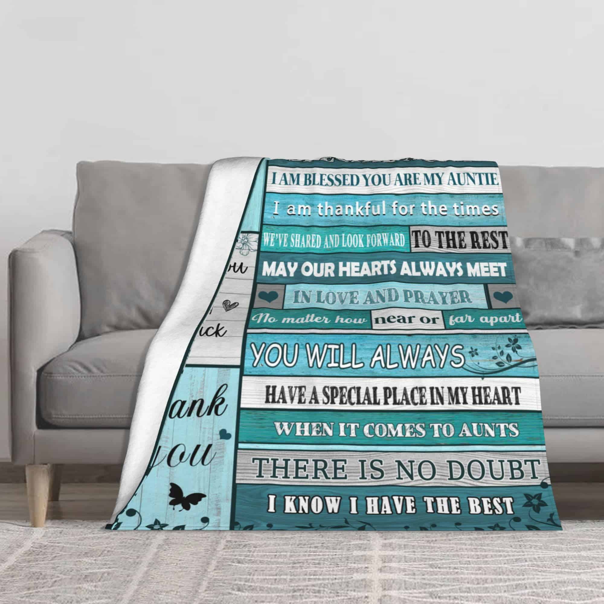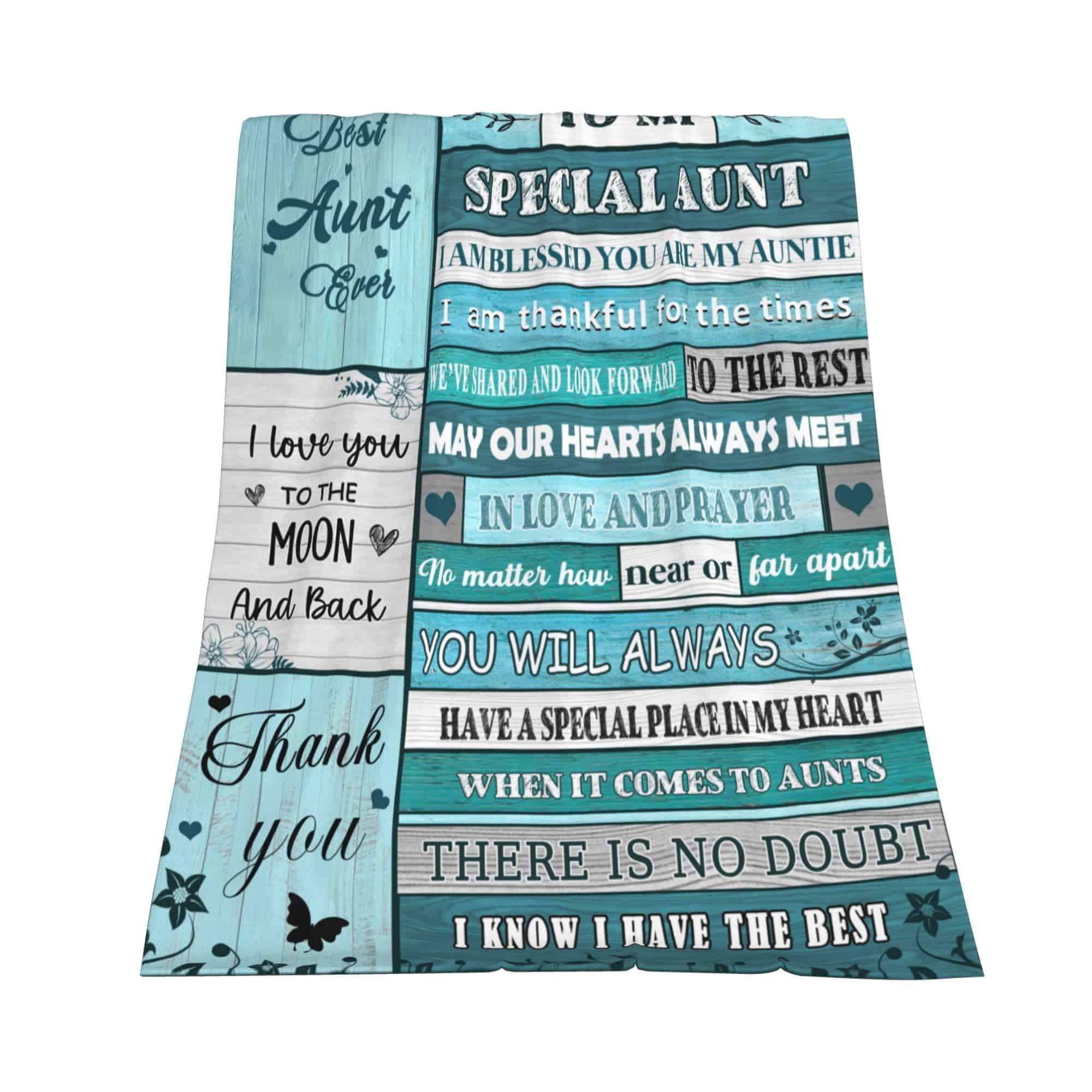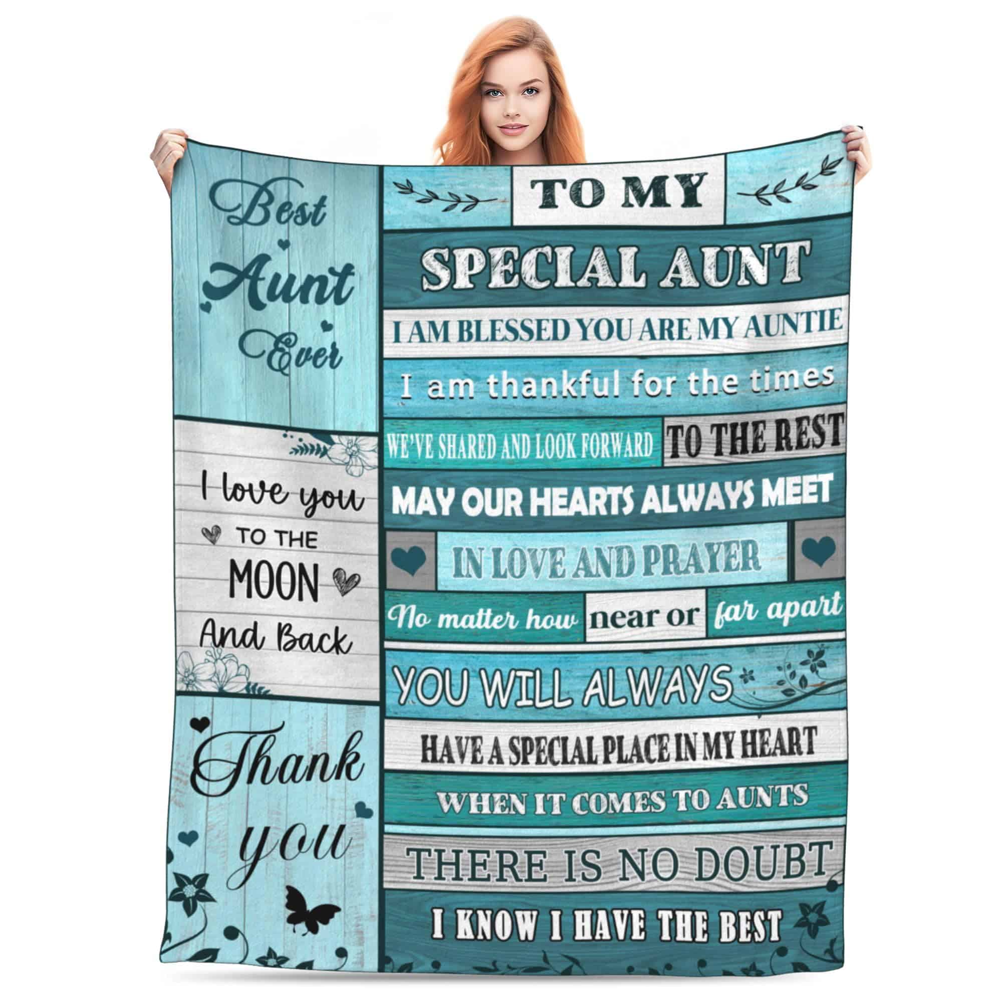 2. Regalo de cumpleaños para la tía: Esta manta de tía no solo brinda calor, sino que también brinda amor. En el Día de la Madre, cumpleaños de la tía, Día de Acción de Gracias, Navidad, esta manta significativa para la tía podría ser el regalo perfecto para tu tía. Puedes decirle cuánto la amas. Estas mantas de tía de sobrina están especialmente diseñadas para expresar amor. También sería el mejor regalo para una tía en un cumpleaños importante como el 30, 40, 50, 60, 70, 80 o cualquier cumpleaños.