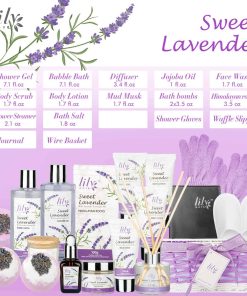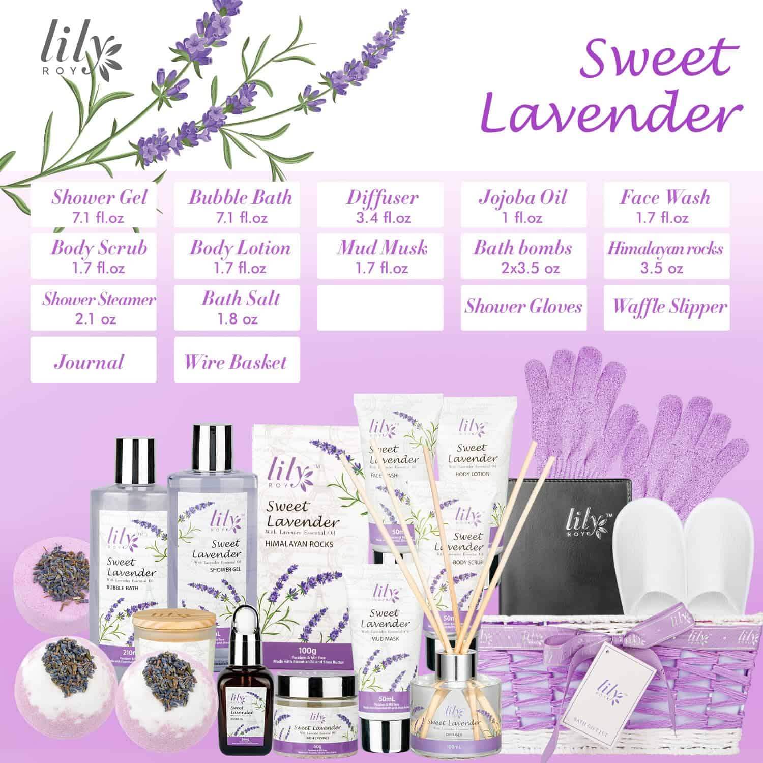 4. KIT DE SPA EN CASA PARA MUJERES: El set de cesta de regalo de baño de spa de Lily Roy para mujeres contiene productos de ducha de primera calidad y libres de sulfatos y parabenos, esenciales de ducha sin crueldad que son ricos en manteca de karité y aceite esencial de lavanda para ayudar a hidratar y calmar la piel. Usa un champú con aceite esencial de lavanda.