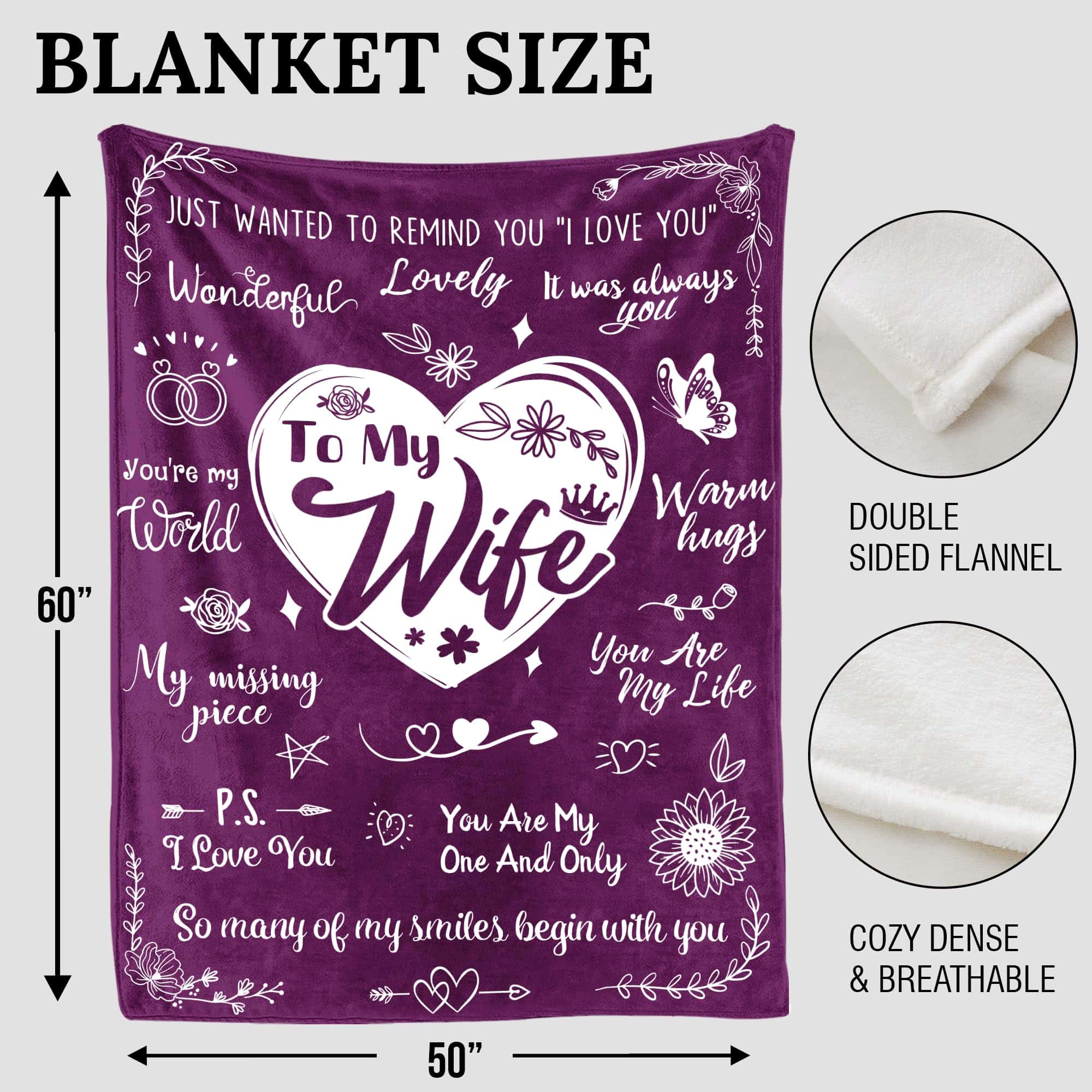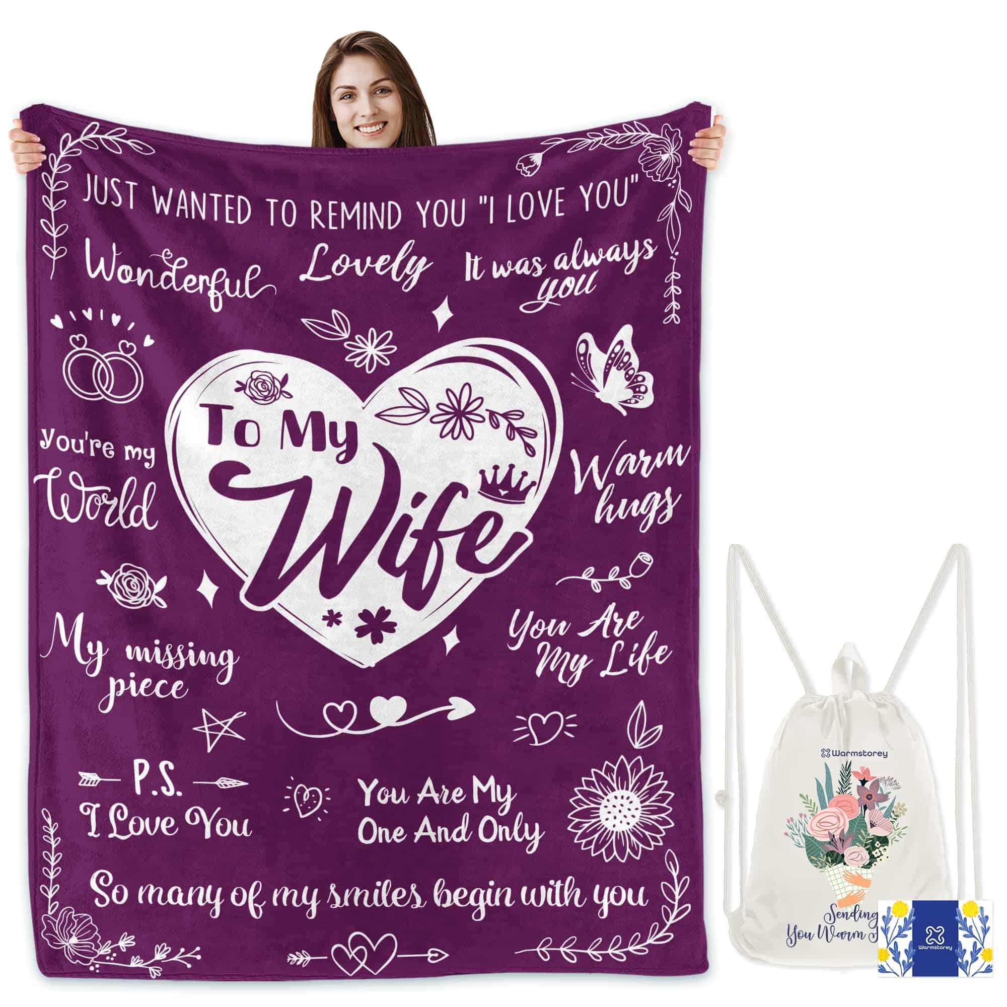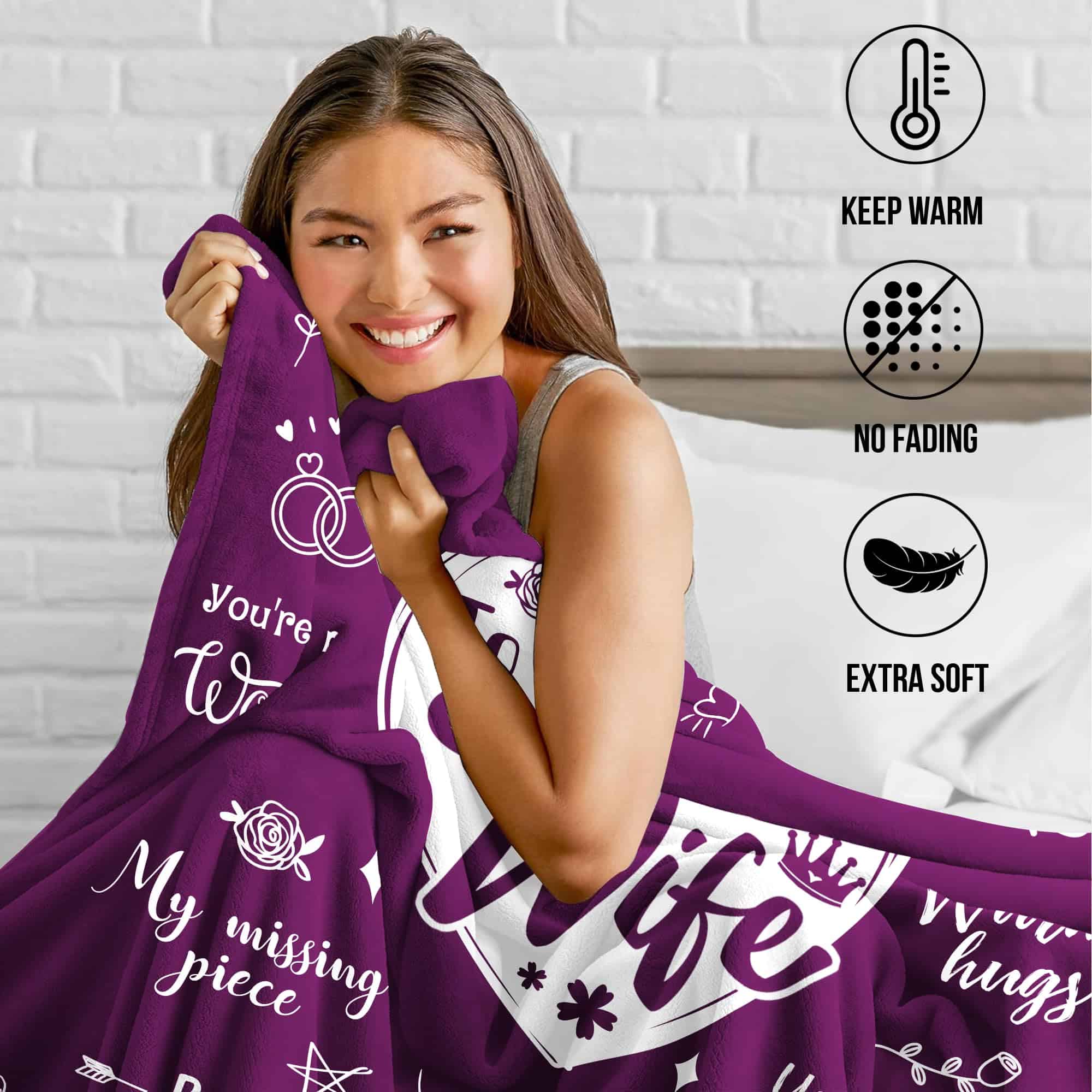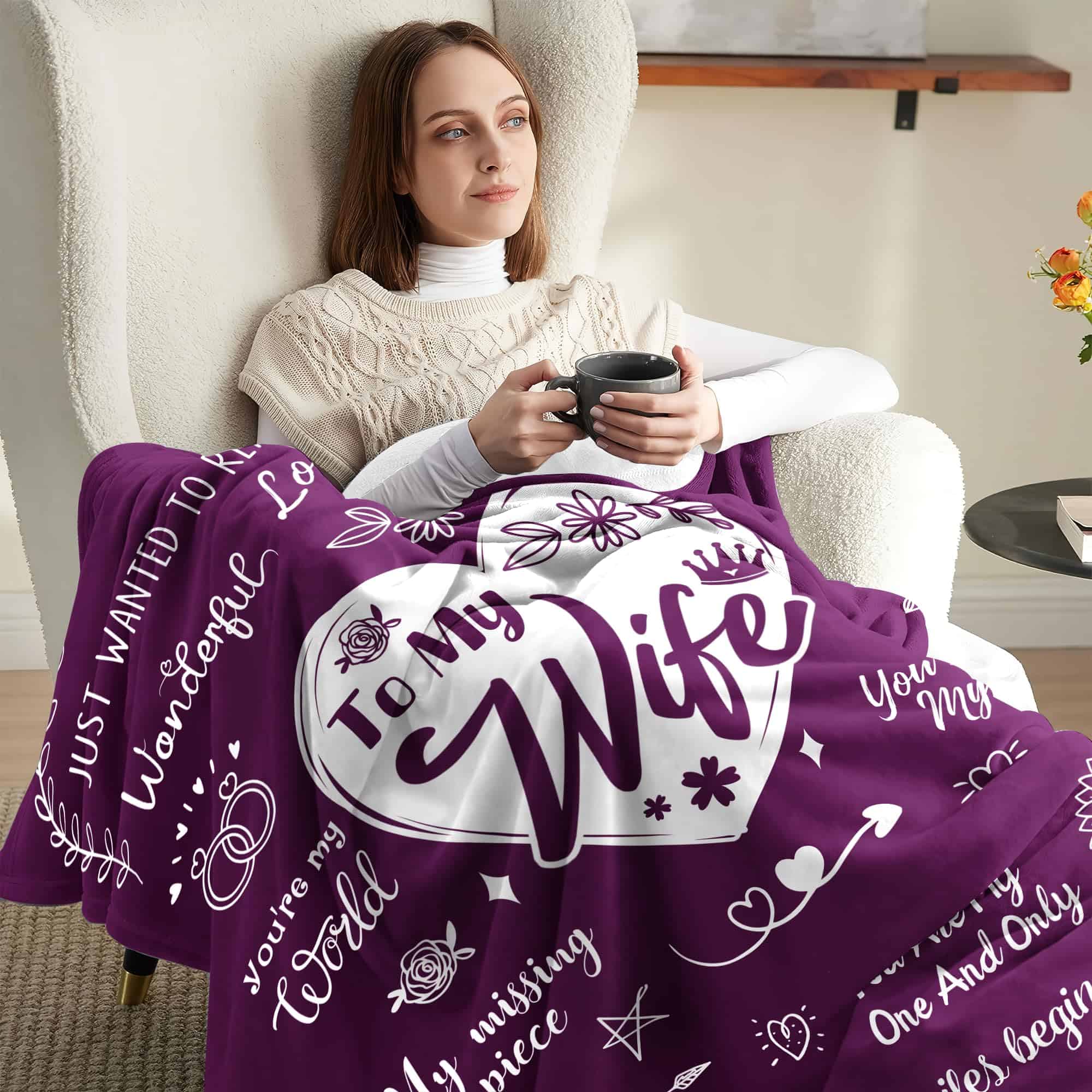2. Mensajes de amor y afecto: Abraza a tu esposa con comodidad y amor con esta manta bellamente diseñada. Ya sea su cumpleaños, su aniversario, Navidad, San Valentín, Pascua, Acción de Gracias, Año Nuevo, o el Día de la Madre, este regalo cariñosamente elaborado derretirá su corazón.