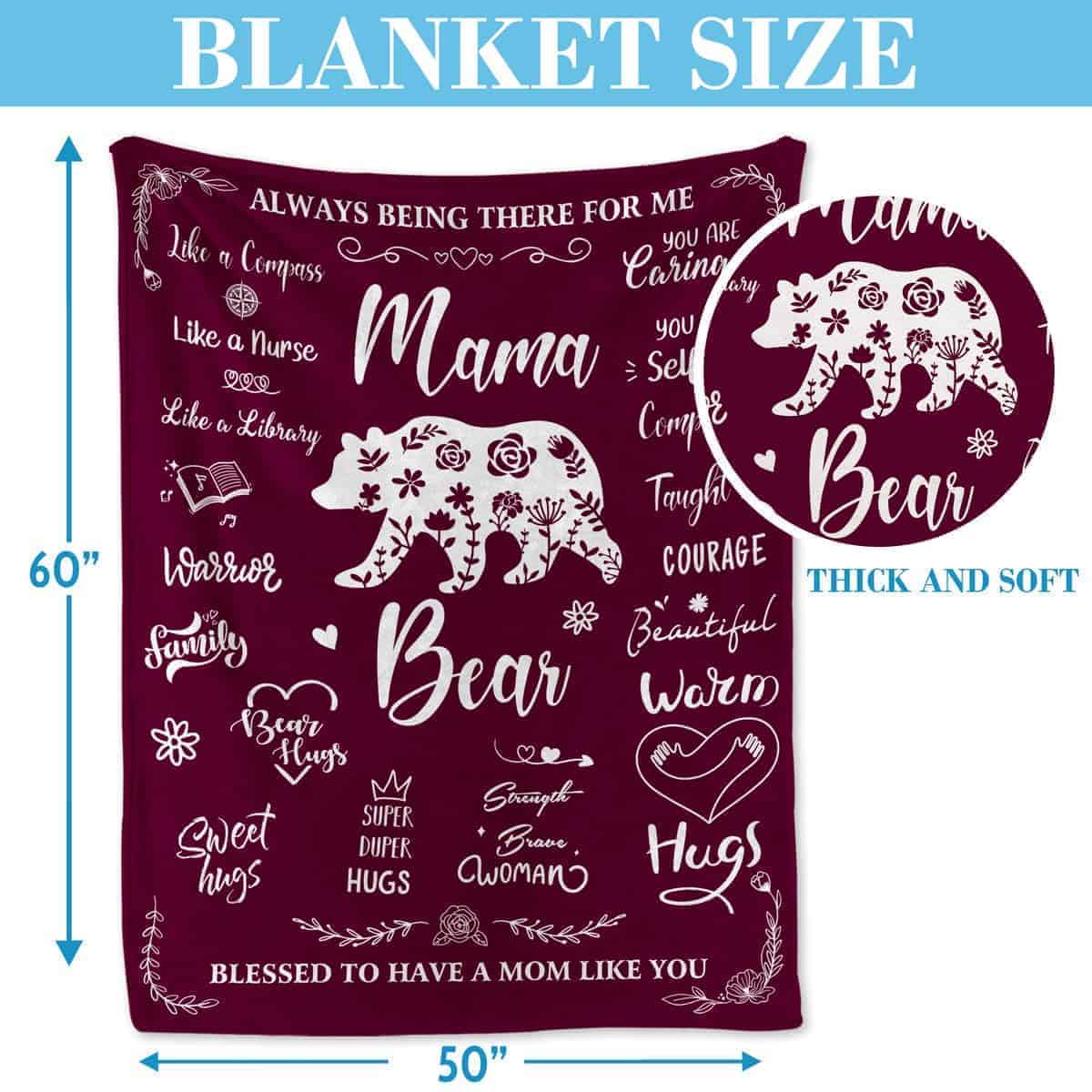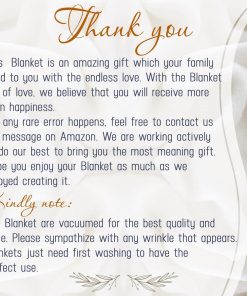 1. REGALO PERFECTO: Destacado por frases significativas, esta manta para mamá no solo brinda calidez a través de su increíble material, sino que también expresa un amor infinito por tu mamá a través de palabras inspiradoras y cariñosas. En cualquier ocasión, incluyendo San Valentín, Día de la Madre, Navidad, Acción de Gracias o Cumpleaños, esta impresionante manta podría ser un regalo perfecto para Mamá, Mama, Suegra, Madrastra, Mamita, para decirle cuánto la amas. 2. MENSAJE DE AMOR: Este es un mensaje inspirador enviado como mantas para mamá de hija e hijo. Creemos que con la mejor manta de mamá de todos los tiempos, llena de amor, Mamá recibirá más que felicidad. Siempre que pase lo que pase en su vida, sus hijos siempre estarán a su lado. Cuando vea estas palabras, sus ojos se llenarán de lágrimas. 3. MATERIAL SUAVE Y PREMIUM: Garantizado 100% tela de franela premium, todas nuestras mantas son directamente más cómodas. Es suave, resistente a las pelusas, resistente a las arrugas y duradero. Y es amigable con tu piel, tu hijo y tu mascota. Puedes relajarte con ella todo el día. 4. DIMENSIÓN: Esta manta para mamá resulta 50×60 pulgadas. Este tamaño mediano es adecuado para sofás, autos para todas las estaciones para ser utilizadas como manta de sofá, manta de cama, viajes, RV, o en cualquier lugar donde necesites mantenerte abrigado y calentito. La manta está envuelta cuidadosamente en una bolsa de plástico. 5. SERVICIO POSTVENTA: Para garantizar la satisfacción del cliente. Si no quedas encantado con estas mantas, devuélvelas para un reembolso del 100% de su precio de compra. Apuntamos alto y haremos todo lo posible para mantener a nuestros clientes felices. Y nuestra promesa, como un árbol familiar, es tan sólida como un roble.