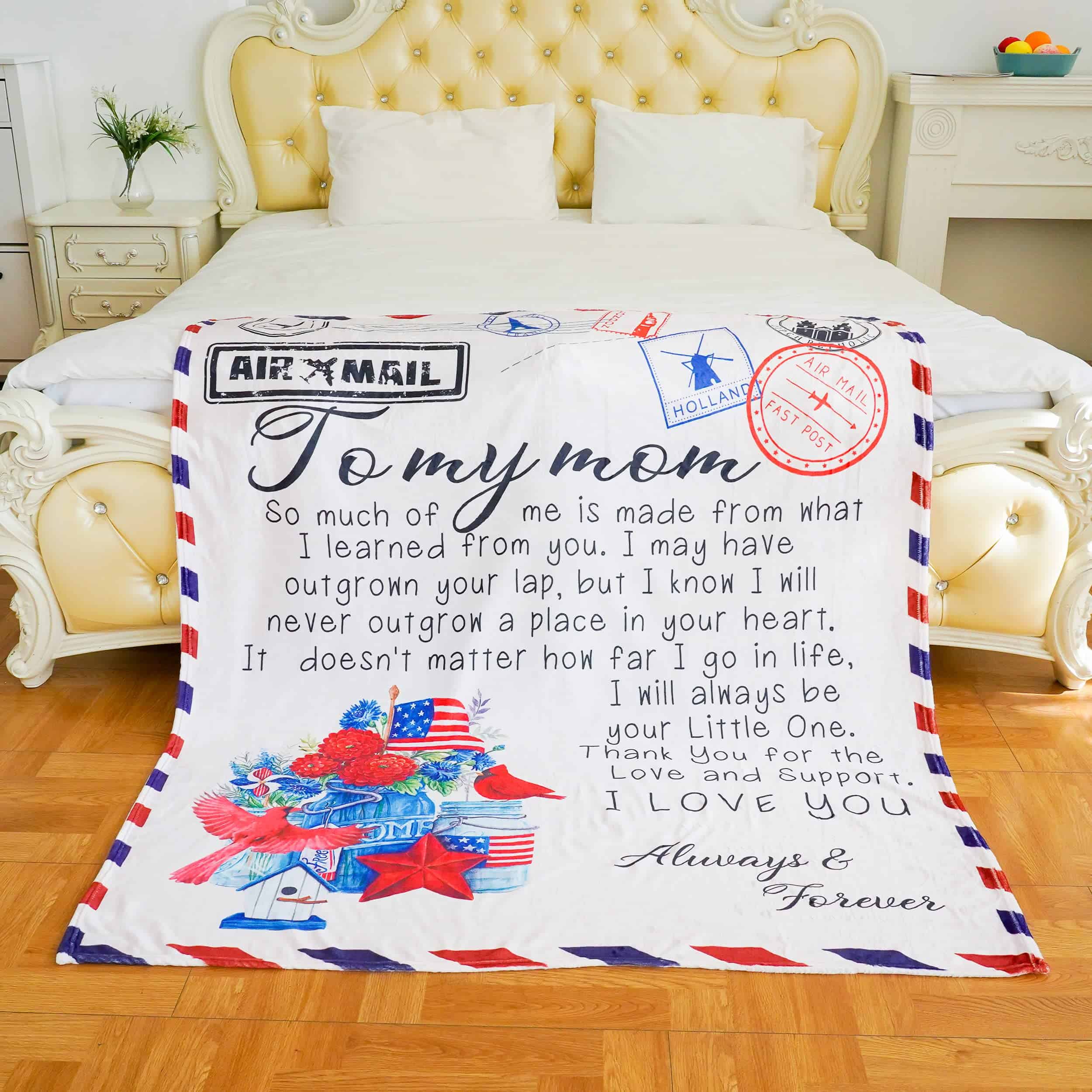 1. Manta Personalizada: Grabada con el texto ‘No importa qué tan lejos llegue en la vida, siempre seré tu pequeño/a. Gracias por el amor y el apoyo. Te amo’, a tu mamá seguramente le gustará. Haz que se sienta cálida y amada.