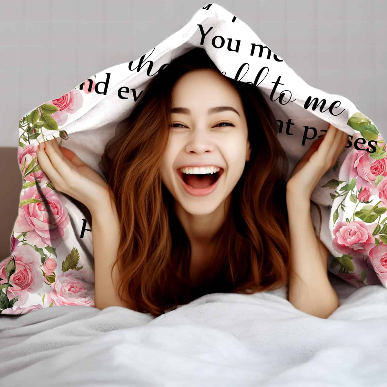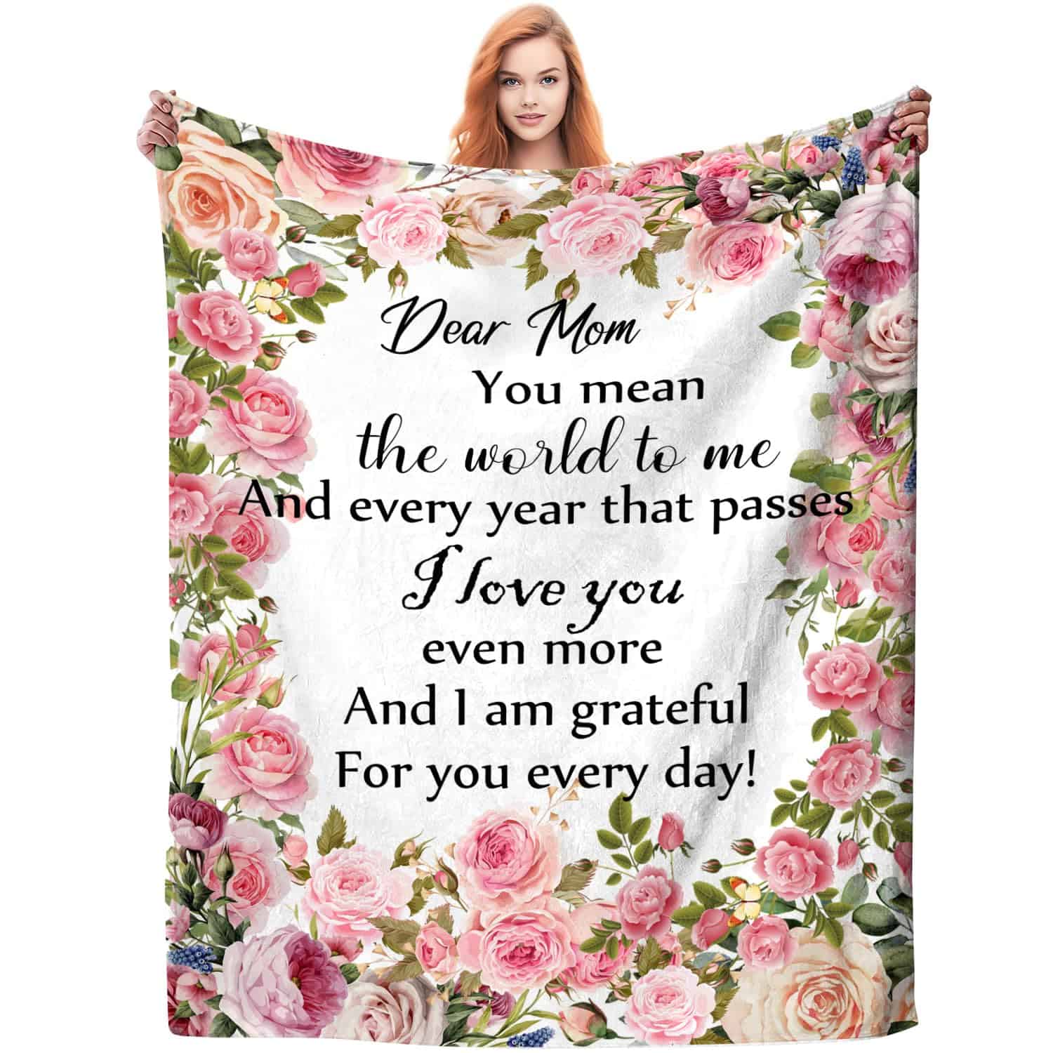 Regalos de cumpleaños para mamá, regalo del Día de la Madre para mamá, regalo de Navidad para mamá. La manta será su recordatorio diario de que es amada y apreciada. Cuando la coloque sobre su cuerpo, se sentirá como si estuvieras a su lado y le dieras un gran abrazo. Le hace sentir como si estuvieras allí con ella, y que ya no está sola.