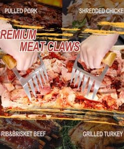 Esta garra de carne es un regalo práctico y especial para tíos que disfrutan cocinando al aire libre o en la cocina. Estas garras de carne aumentan la eficiencia del trabajo en la cocina y garantizan seguridad e higiene durante el proceso de cocción. El juego de regalo para Tío incluye un par de garras de carne, un delantal y un empaque exquisito, lo que lo convierte en un regalo premium para tíos amantes de la barbacoa. Estas garras de carne son un accesorio de barbacoa perfecto, ideal para quienes aman hacer barbacoa y ahumar carne. Hechas de acero inoxidable de alta calidad, estas garras de carne son resistentes a la corrosión y tienen alta resistencia a altas temperaturas, a diferencia de algunas garras de plástico o nylon que pueden derretirse o doblarse. Cada garra está diseñada con un mango de madera sólida que ofrece un mejor agarre y control y protege sus manos del calor durante el proceso de cocción. Las garras de metal están espaciadas a la distancia perfecta y cuentan con puntas prismáticas resistentes que facilitan el desmenuzado de la carne y aseguran los mejores resultados cada vez. Estas garras de carne para tíos hacen que desmenuzar la carne sea fácil y rápido, permitiendo que la carne se triture en segundos sin complicaciones. Después de desmenuzar la carne, estas garras de carne se pueden limpiar fácilmente en el lavavajillas o enjuagar bajo agua tibia, lo que hace que la limpieza sea un proceso sin preocupaciones.