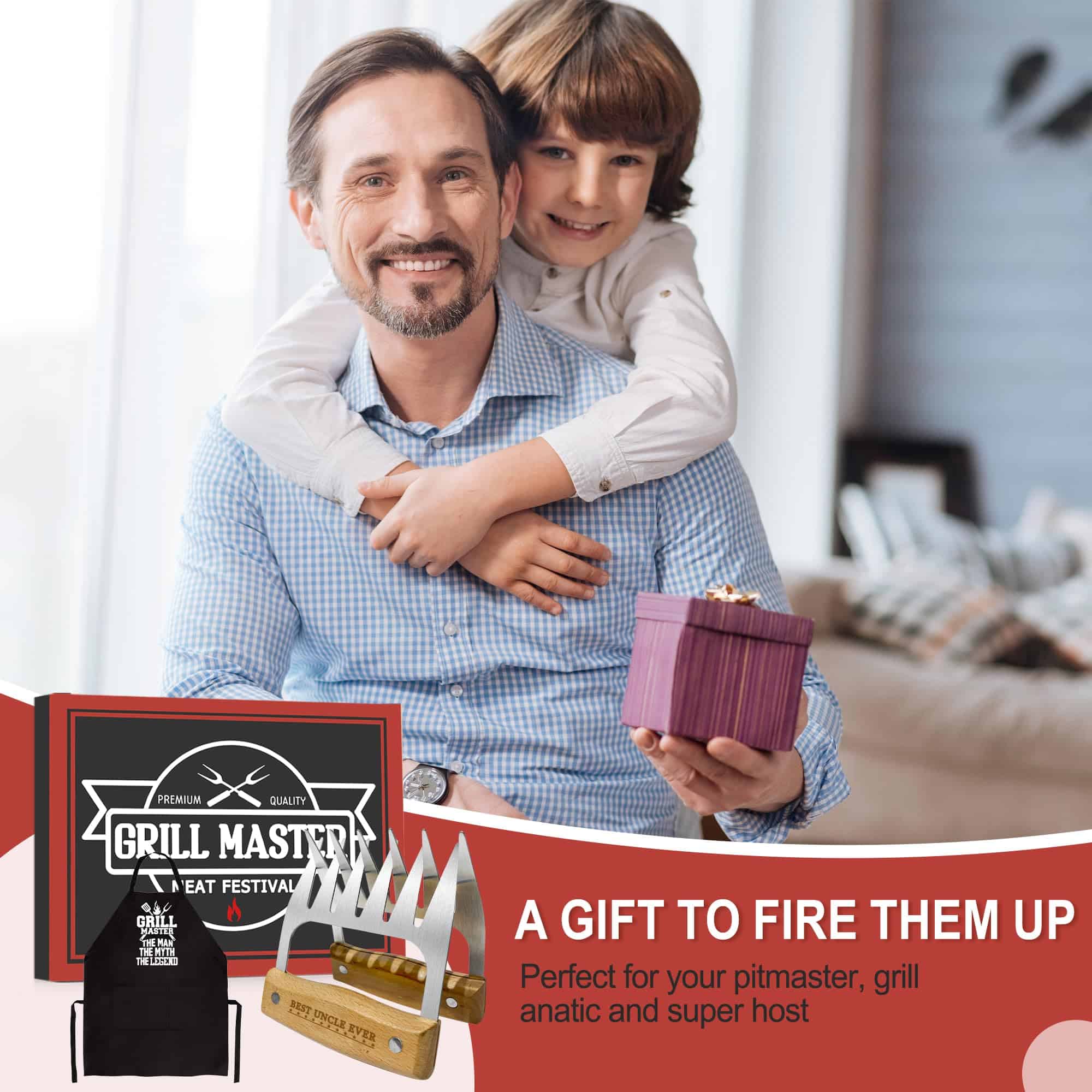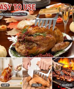 1. Regalos únicos para Tío: Estas garras de carne son un regalo práctico y especial, adecuado para tíos que disfrutan cocinando al aire libre o en la cocina. Aumentan la eficiencia en el trabajo de la cocina y garantizan seguridad e higiene durante el proceso de cocción. 2. Un regalo premium para un Tío amante de la Barbacoa: Para el hombre que ama hacer barbacoa o ahumar carne, este juego de garras de carne es imprescindible y es aún mejor que las garras de carne ordinarias. El set de regalo para Tío incluye: un par de garras de carne, un delantal y un empaque exquisito. 3. El accesorio de barbacoa perfecto: Estas garras de carne son un regalo práctico y versátil para quienes aman hacer barbacoa y ahumar carne. Aumentan la eficiencia de cocción y garantizan seguridad y disfrute en la cocina. 4. Material premium: Estas garras de carne para barbacoa están hechas de acero inoxidable, resistente a la corrosión y con alta resistencia a altas temperaturas. 5. Mango de madera gruesa hecho a mano: Cada garra está diseñada con un mango de madera sólida que ofrece un mejor agarre y control, no deja residuos de comida; el diseño antideslizante ayuda a sostenerlo, permitiéndole rasgar la carne de manera segura y evitando lesiones. 6. Trituración rápida y uniforme de la carne: El diseño de la garra de carne hace que despedazar la carne sea simple y divertido. Las garras de metal están espaciadas a la distancia perfecta y presentan puntas prismáticas robustas. 7. Fácil de limpiar: Estas garras de carne para tío tienen un mango de madera sólida y acero inoxidable, ofrecen libertad y flexibilidad de uso, así como durabilidad. Se pueden lavar en lavavajillas o enjuagar bajo agua tibia después de desmenuzar la carne.