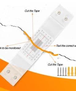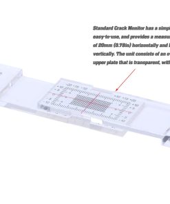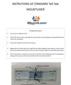 Indicador para monitoreo manual de grietas en dos dimensiones. Este pequeño artículo se utiliza para monitorear las grietas en las paredes y cómo evolucionan a lo largo del tiempo medido. Las Tell-Tales son calibradores de precisión utilizados para monitorear el movimiento de una grieta, horizontal o verticalmente en una superficie plana. El monitor consta de dos placas que se superponen parcialmente. La placa inferior está calibrada en milímetros y la placa superior es transparente y está marcada con un cursor de línea de pelo en forma de cruz. Los dos pernos se quitan. A medida que la grieta se abre o se cierra, el cursor se mueve en relación con la escala de calibración. La apertura o cierre de la grieta se registra luego en la hoja de registro de grietas suministrada.
