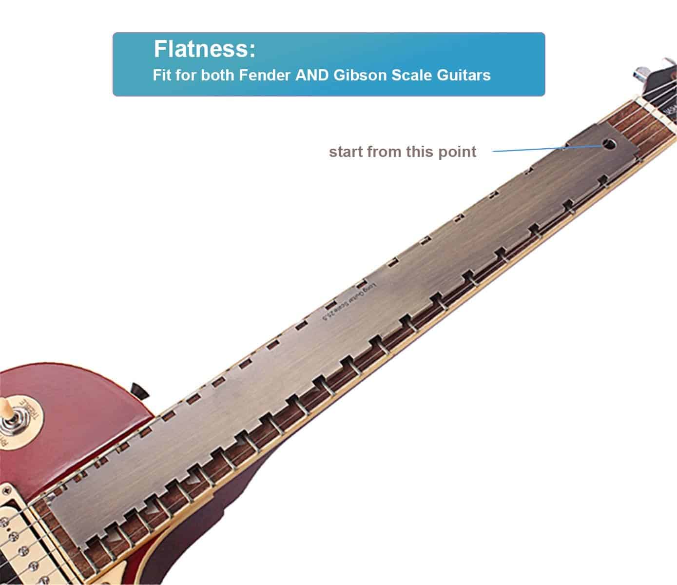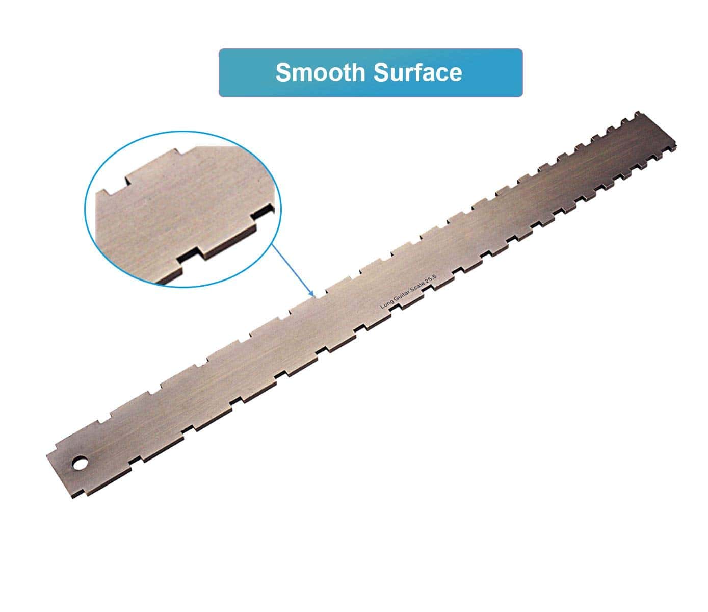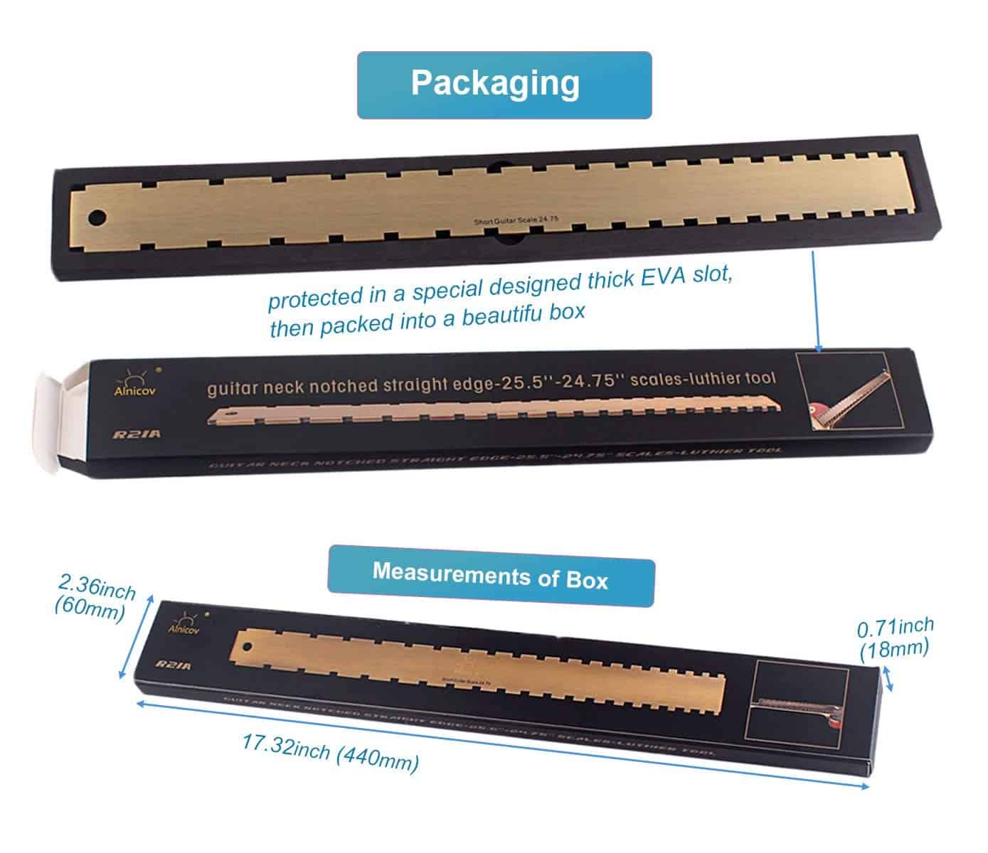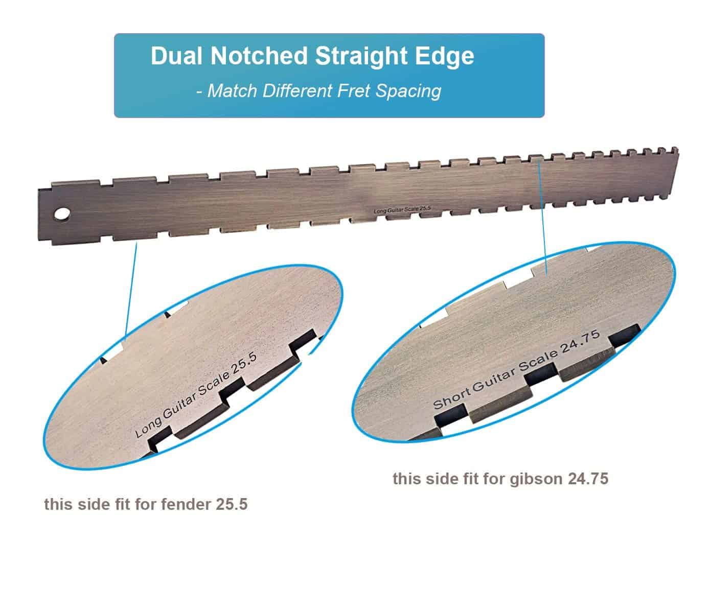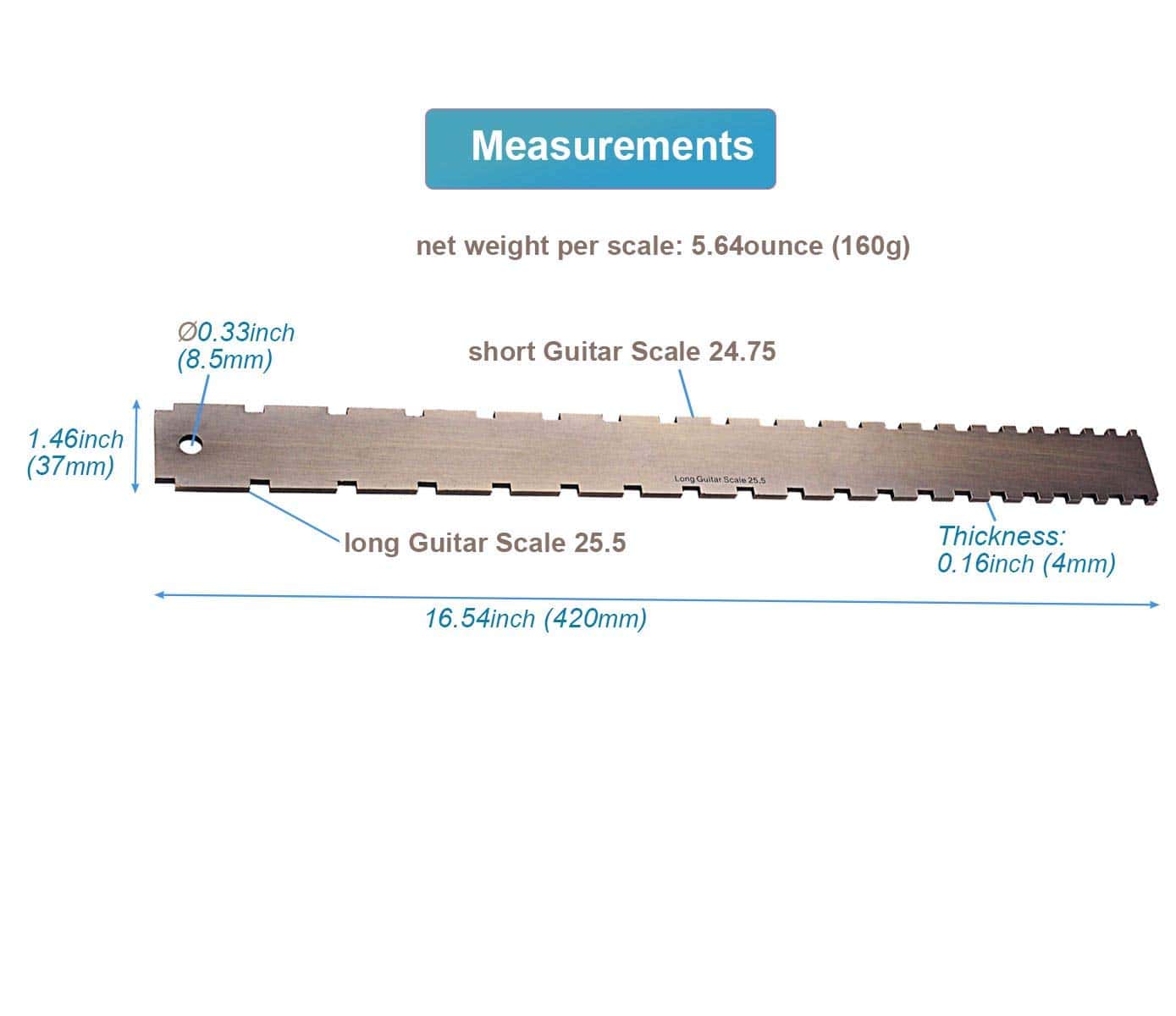 3. Regla recta de doble muesca para adaptarse a diferentes espaciados de trastes: nuestra regla recta única está hecha de aluminio de 5 mm (0.19 pulgadas) con un control de calidad muy rígido y durará toda la vida! ambos lados en muesca: uno para la longitud de escala de 25.5» y 24.75». con ella, solo necesitas unos minutos para corregir ajustes de trussrod del diapasón,.