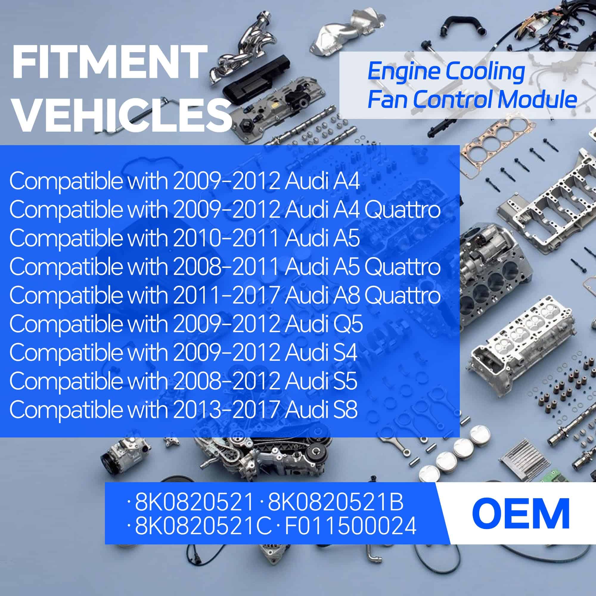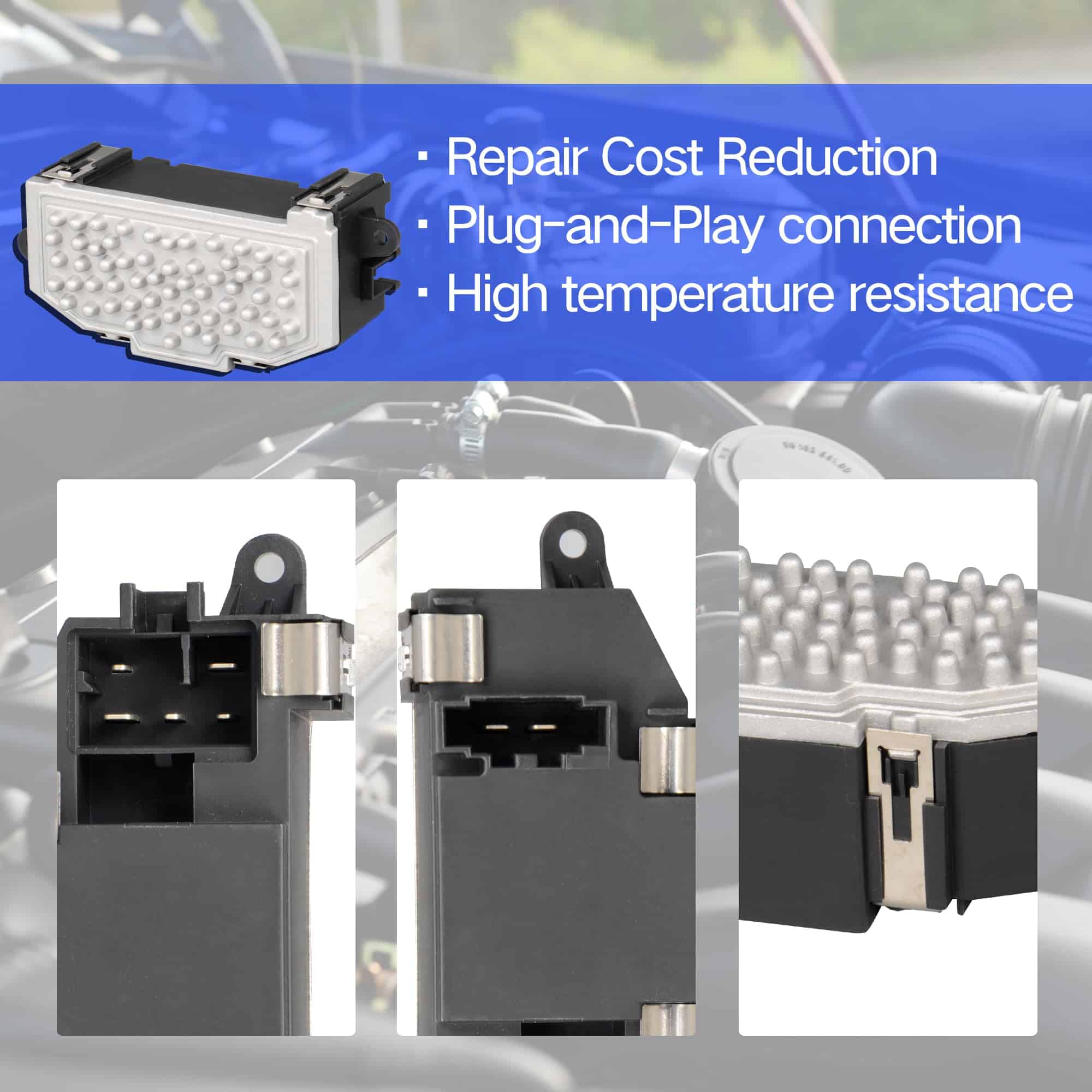 Regulador de Motor de Soplador AdvanEX 8K0820521 Compatible con Audi A4/A5/A8/Q5/S4/S5/S8 Resistor del Soplador Reemplaza OE 8K0820521B 8K0820521C F011500024. Este regulador de motor de soplador es compatible con varios modelos de Audi, incluyendo A4, A5, A8 Quattro, Q5, S4, S5, S8. Se ajusta la velocidad del viento al controlar la velocidad del motor del soplador. El montaje y los conectores son idénticos a los datos de OE para un ajuste preciso y una operación confiable. Se recomienda verificar la compatibilidad con su vehículo antes de la compra. Brindamos un servicio post-venta de un año para garantizar la satisfacción del cliente. Para cualquier problema de calidad, no dude en contactarnos.