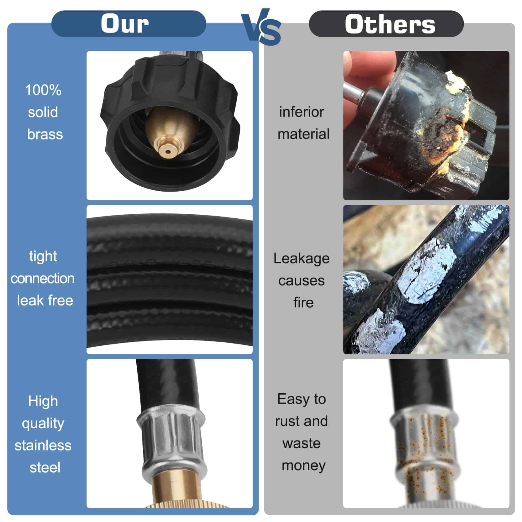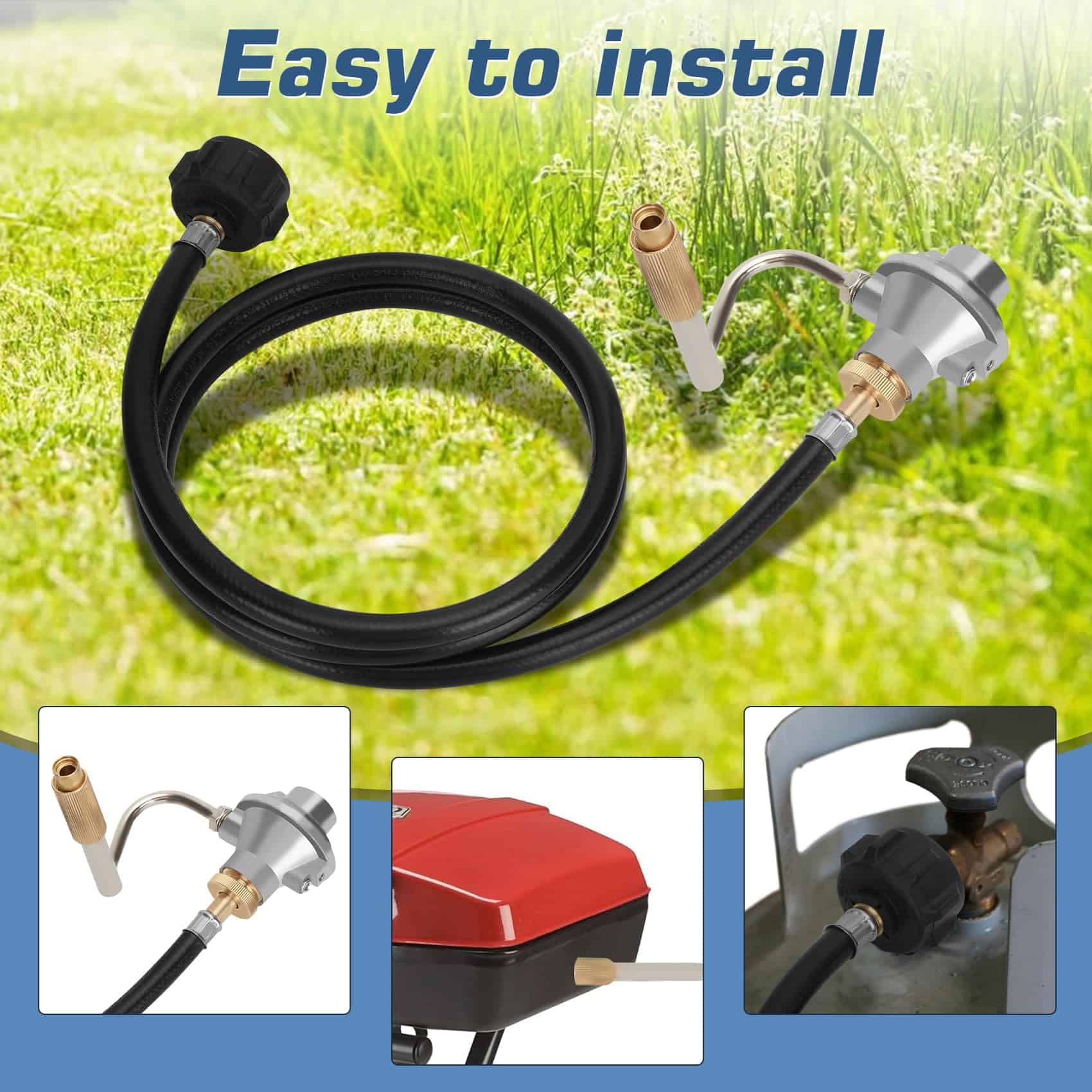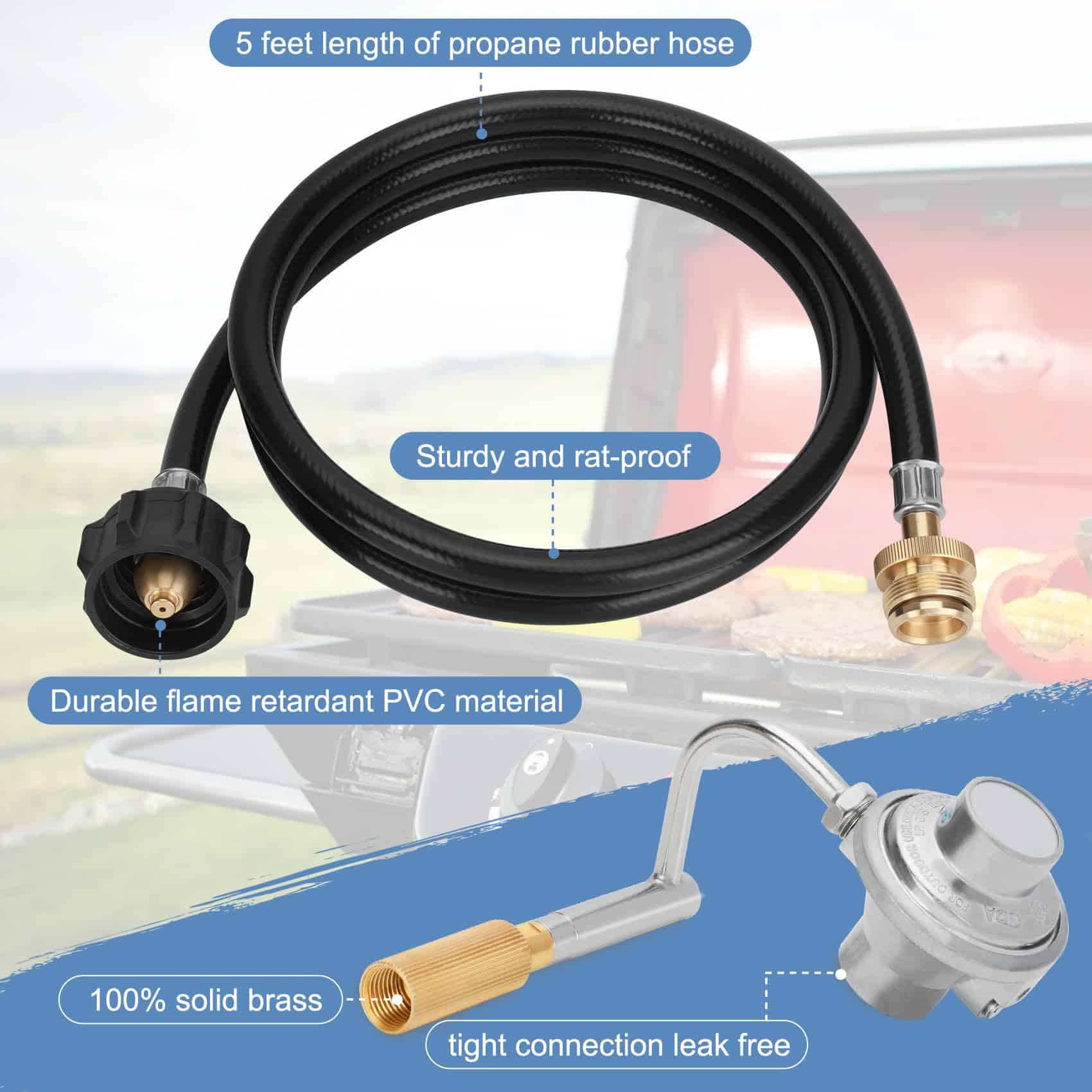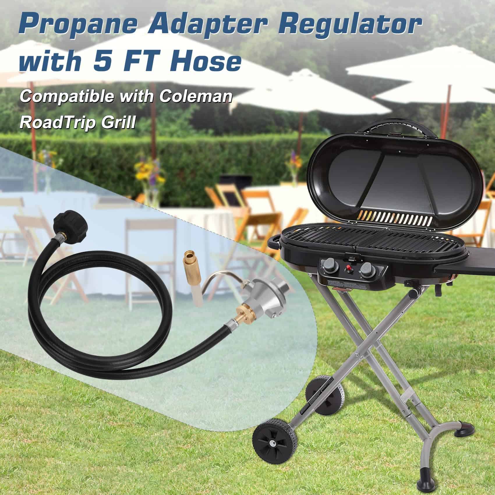 Regulador de parrilla para Coleman Roadtrip Grill con manguera adaptadora de propano de 5 pies es el reemplazo perfecto para las parrillas Roadtrip LXE, Le, Lx, LXX, Party Portable, etc. Compatible con los reguladores Coleman C001, 5010000743, 9942A5251, 9942-A5251, 9942-5251, etc. Hecho de materiales de alta calidad como latón sólido y acero inoxidable, este regulador es duradero y resistente a la corrosión. Con un flujo de gas de baja presión de 25,000 BTU/hr y una presión de salida de 11″W.C., este producto ha pasado la certificación CSA para garantizar su seguridad. El paquete incluye 1 regulador de parrilla y manguera adaptadora de propano de 5 pies, siendo la solución perfecta para tus necesidades de barbacoa. Con soporte de calidad de 2 años, puedes confiar en Ebusin para proporcionar productos duraderos y de alta calidad. ¡No pierdas la oportunidad de disfrutar de deliciosas barbacoas con este regulador de parrilla!