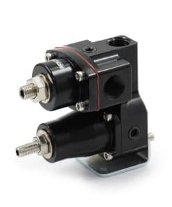 Regulador de presión de combustible de doble etapa EFI a carburador. Regulador de presión de combustible de doble etapa adecuado para la conversión de EFI a carburador. Fabricado con aleación de aluminio de alta calidad. Controla la presión de la bomba/línea de 8 a 16 PSI y la presión del carburador de 5 a 9 PSI. Permite que cualquier automóvil o camión, originalmente equipado con un motor EFI de estilo de retorno, se convierta de manera asequible a un carburador estándar. Anodizado en la superficie para mayor durabilidad.