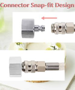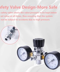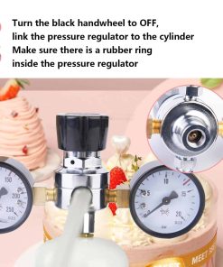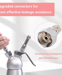 Cuerpo principal de latón de grado alimenticio, y con superficie cromada, más resistente y confiable que el cuerpo de aluminio. Con un resultado de sellado mejor que el cuerpo de válvula de aluminio. Uso conveniente: un manómetro de presión que muestra la presión de trabajo, haciendo que su operación sea más precisa. Buen aspecto: Con superficie cromada, se ve ordenado y elegante. Es la elección perfecta para el servicio de catering y panadería. Con una manguera flexible y un adaptador resistente, que permiten adaptarse a la mayoría de los dispensadores de crema con conexión rápida.