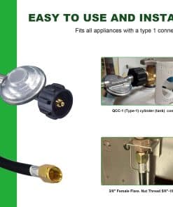 1. Versatilidad- El Regulador y Manguera con medidor de tanque de propano proporciona una conexión segura y hermética entre su parrilla y los tanques de gas LPG QCC1, y se utiliza para la mayoría de las aplicaciones de propano de baja presión. El paquete incluye: 1 Manguera Adaptadora y Regulador de Propano de 6 FT certificado por CSA.