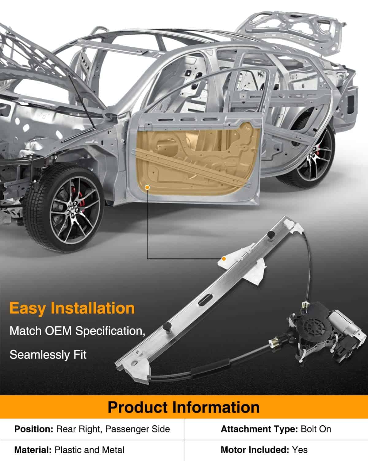 1. Ajuste directo al regulador de ventana eléctrico de reemplazo OE con motor de 6 pines, ajuste directo. 2. Ajuste del vehículo compatible con Mazda CX-9 2007-2015 Sport Utility. 3. Posición trasera derecha (lado del pasajero). 4. Número de referencia GJ6A5858XA, GJ6A5858XB, GJ6A5858XC, 751-858, 751858. 5. Compre con confianza 1 año de garantía de calidad sin límite de millas — Valoramos enormemente su satisfacción y nos esforzamos por brindarle una buena experiencia de compra. Cualquier pregunta adicional, no dude en contactarnos en cualquier momento.