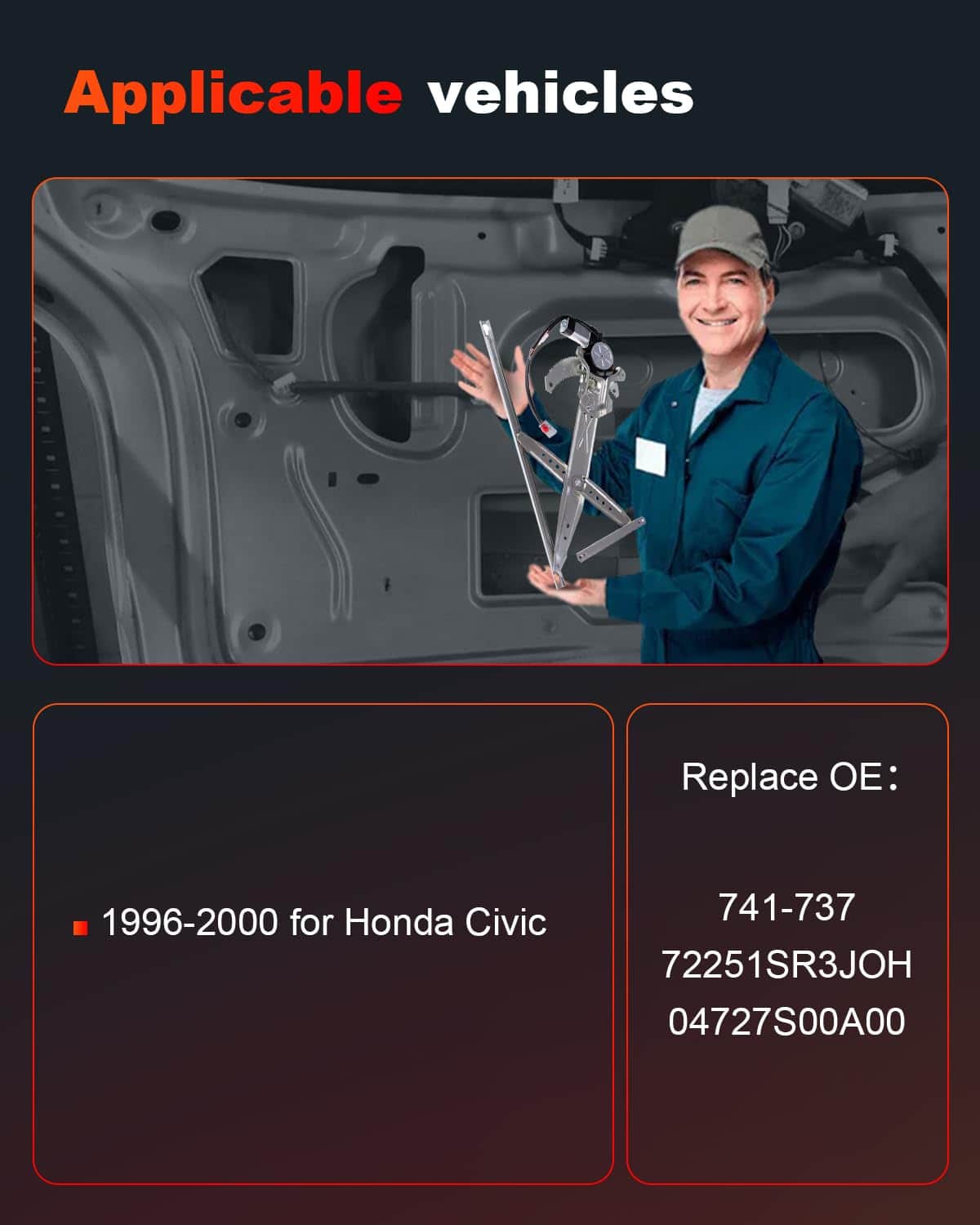 1. Compatible con: 1996-2000 Civic. (Asegúrese de que este tipo de regulador de ventana eléctrico sea exactamente aplicable para usted).
